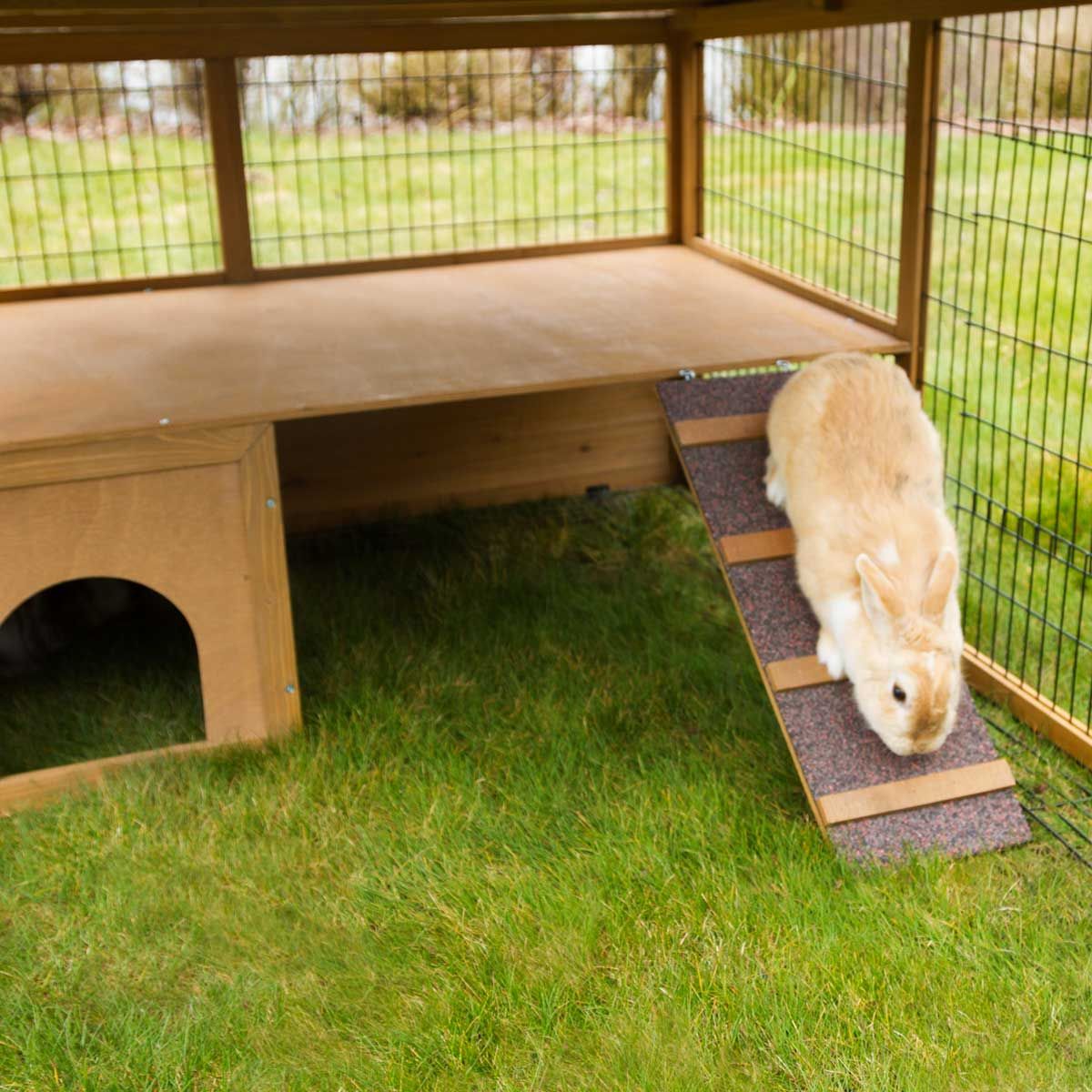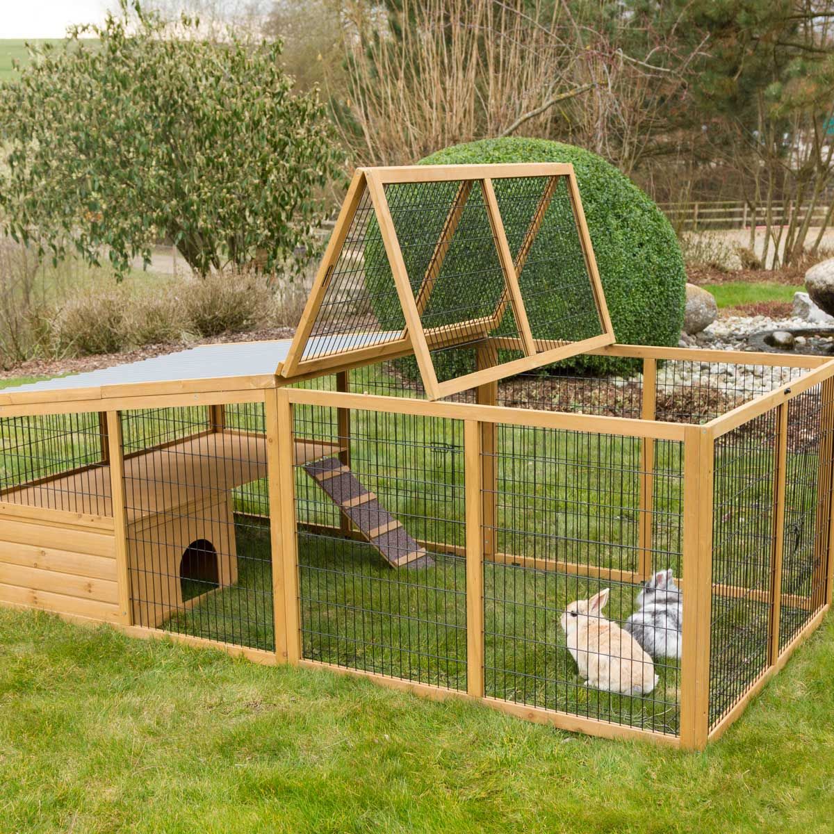 Cet enclos de haute qualité avec barrière anti-fugue offre une protection totale à votre animal. Grâce à la barrière anti-fugue unique en son genre placée sur le pourtour de l'enclos, votre petit roi du jeu ne pourra pas s'échapper de l'enclos. Le couvercle grillagé s'ouvre et protège votre petit des hôtes indésirables comme les chats, les fouines ou les oiseaux de proie. En même temps, il empêche les animaux de sauter hors de l'enclos. La protection solaire fournie offre suffisamment d'ombre les jours de grande chaleur.