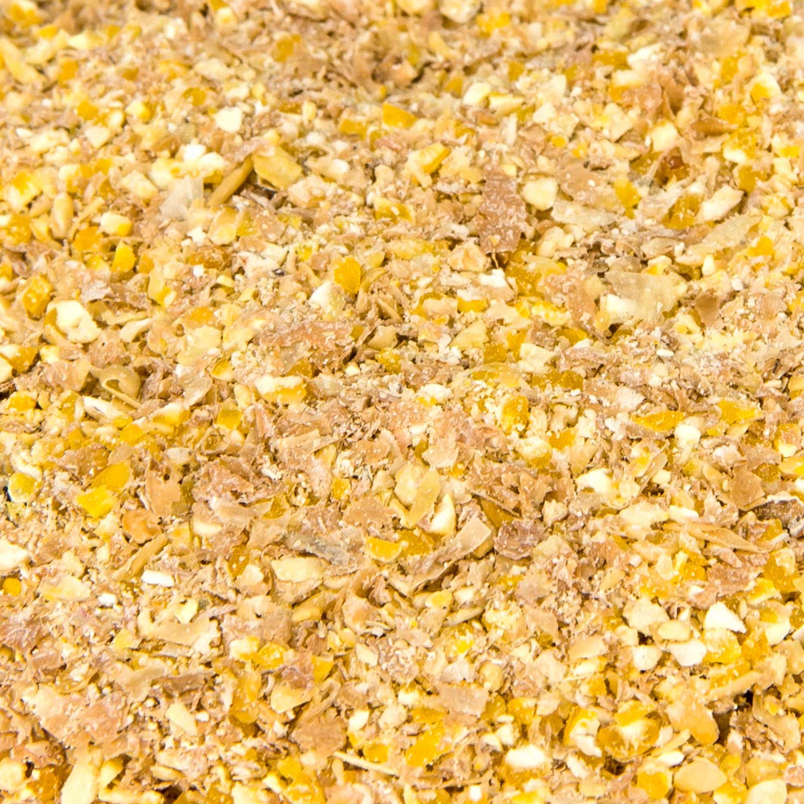 Semoule de maïs, farine d'extraction de soja (haricots) avec pâte à savon (chauffée à la vapeur), son de blé grossier, carbonate de calcium, phosphate monocalcique, huile de tournesol, chlorure de sodium