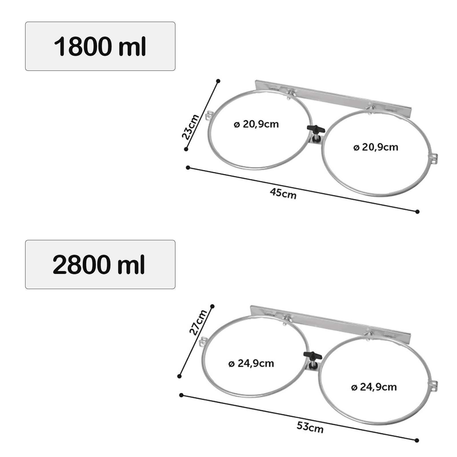 - 2800 ml (diamètre d'environ 24 cm, et exemple pour 2 bols)