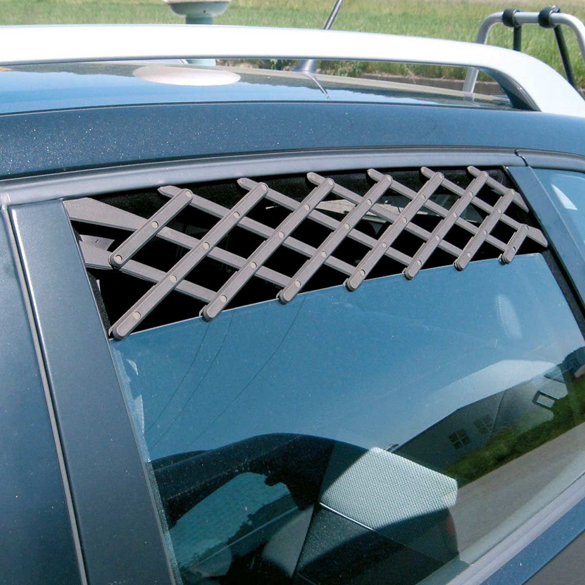 La grille pour chien en plastique robuste s'adapte à toutes les largeurs de fenêtre. La grille de protection pour chiens assure suffisamment d'air frais dans l'habitacle, même lorsque la voiture est fermée, si votre compagnon à quatre pattes doit vous attendre seul dans la voiture pendant un très court laps de temps.