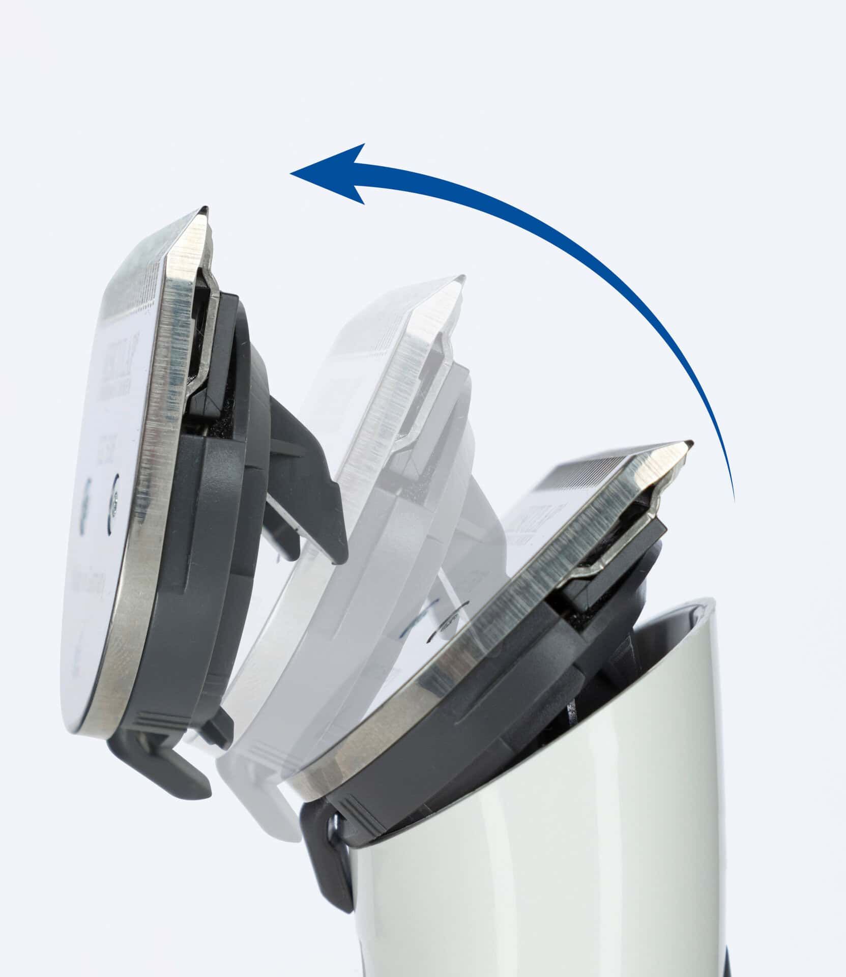 Pour garantir une durée de vie optimale de la tête de coupe, il est important de l'entretenir régulièrement et correctement. Nettoyez la plaque de coupe avec un chiffon doux ou un pinceau. Ce faisant, assurez-vous que les espaces entre les dents sont propres. Pour éviter la corrosion en cas d'utilisation de désinfectant, séchez soigneusement la tête de coupe.