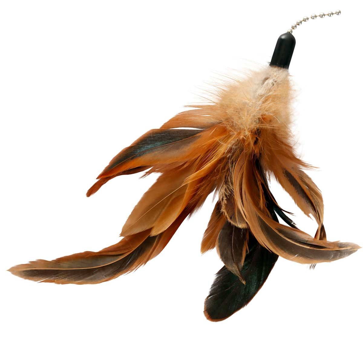 Le jouet pour chat est livré avec 3 pendentifs interchangeables en véritables plumes. La longueur des plumes est d'environ 20 cm. La canne à pêche de stimulation pour chats mesure environ 95 cm de long et il est très facile de l'assembler.