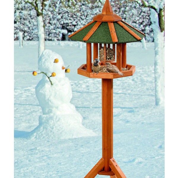 La mangeoire est en bois massif et résistant aux intempéries. Le revêtement spécial du toit offre un lieu de débarquement idéal pour les animaux, qui est facilement accessible de tous les côtés! Facile à assembler.