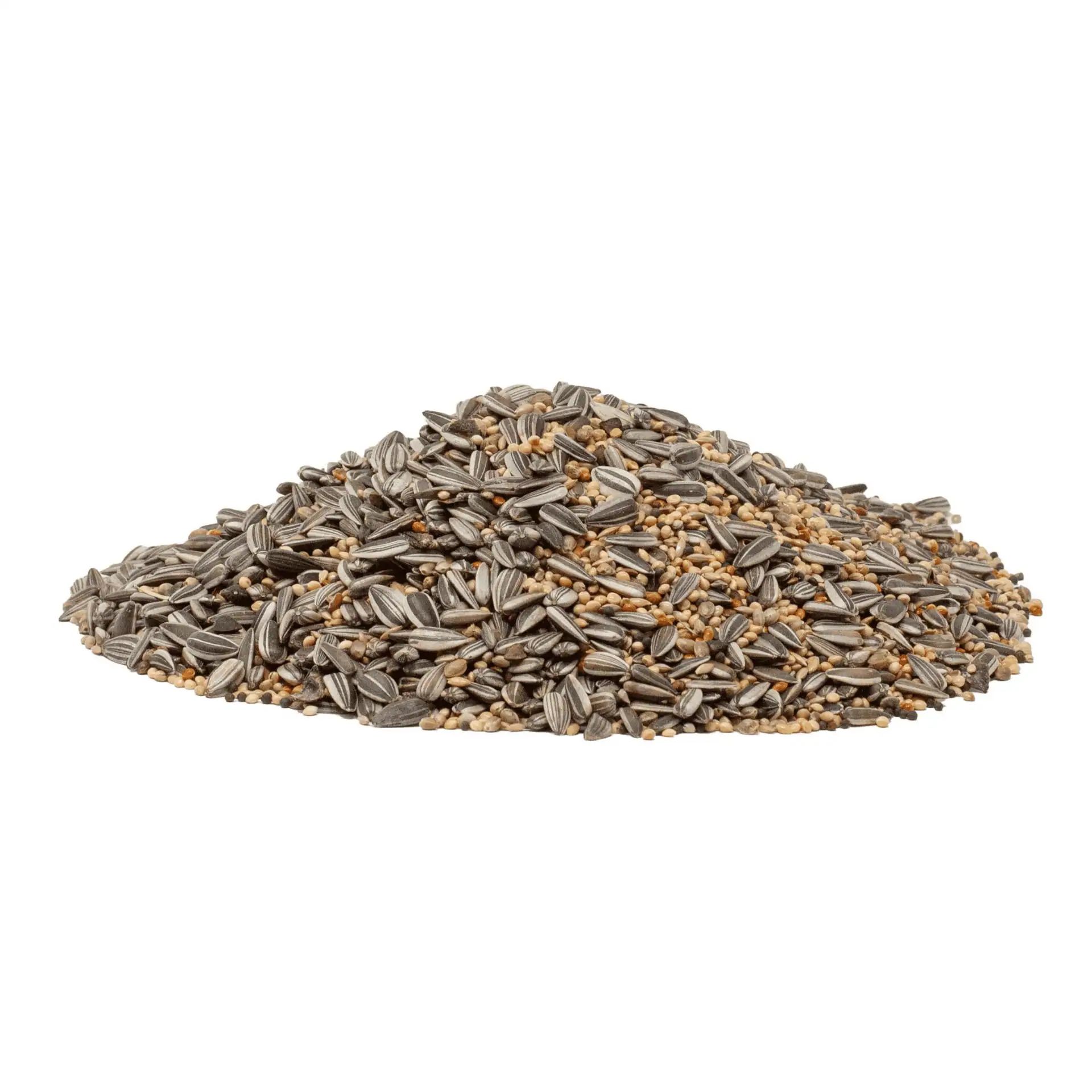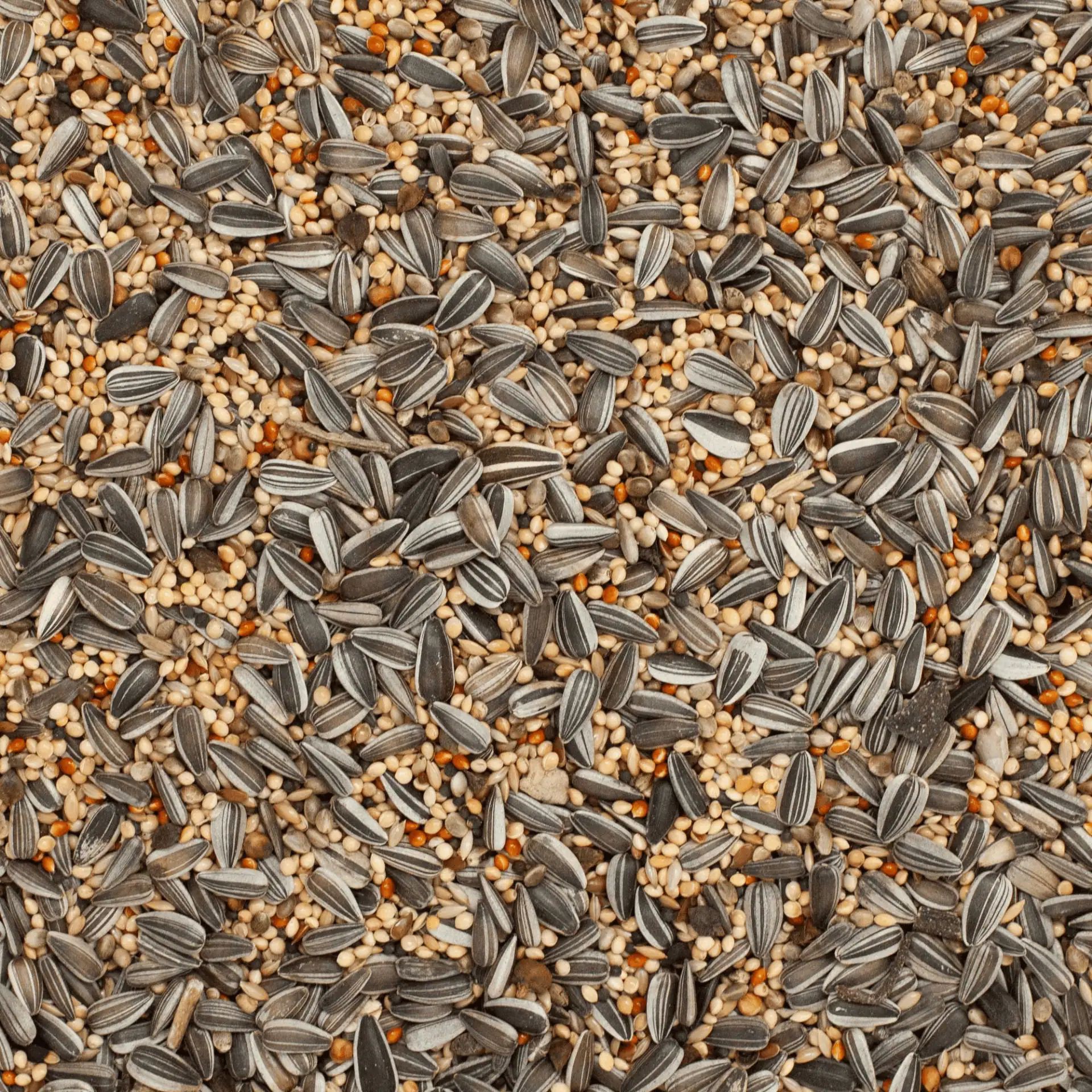 Composition: 35 % de tournesol strié, 33 % de millet jaune, 10 % de graines luisantes, 7 % de chanvre, 5 % de millet rouge, 5 % de navette noire, 2 % de graines de lin, 2 % de sarrasin, 1 % de milo.