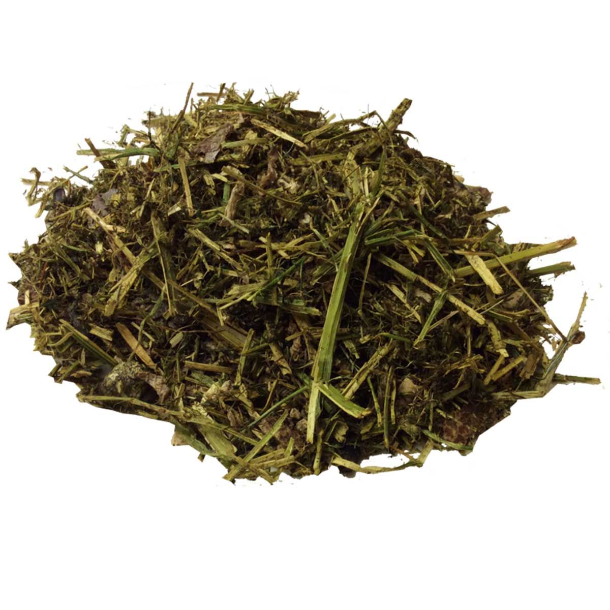Foin de luzerne, farine verte, séchée, farine de riz fourrager, pulpe de betterave sucrière séchée, mélasse, tourteau de lin, graines de tournesol, huile de lin pressée à froid