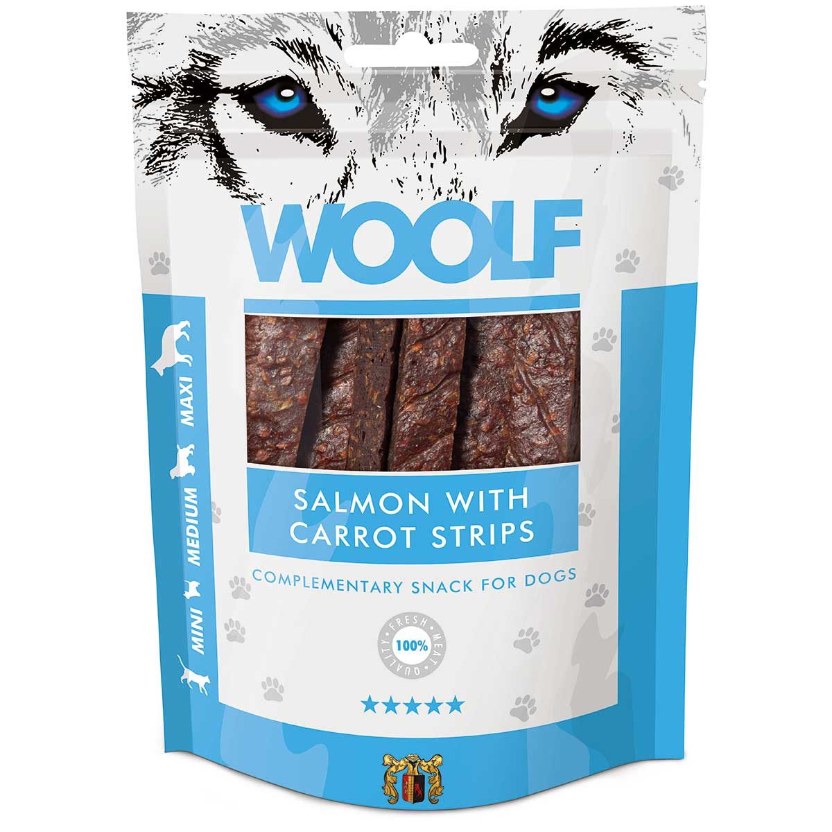 Woolf friandise pour chiens lamelles de saumon avec carottes 100 g