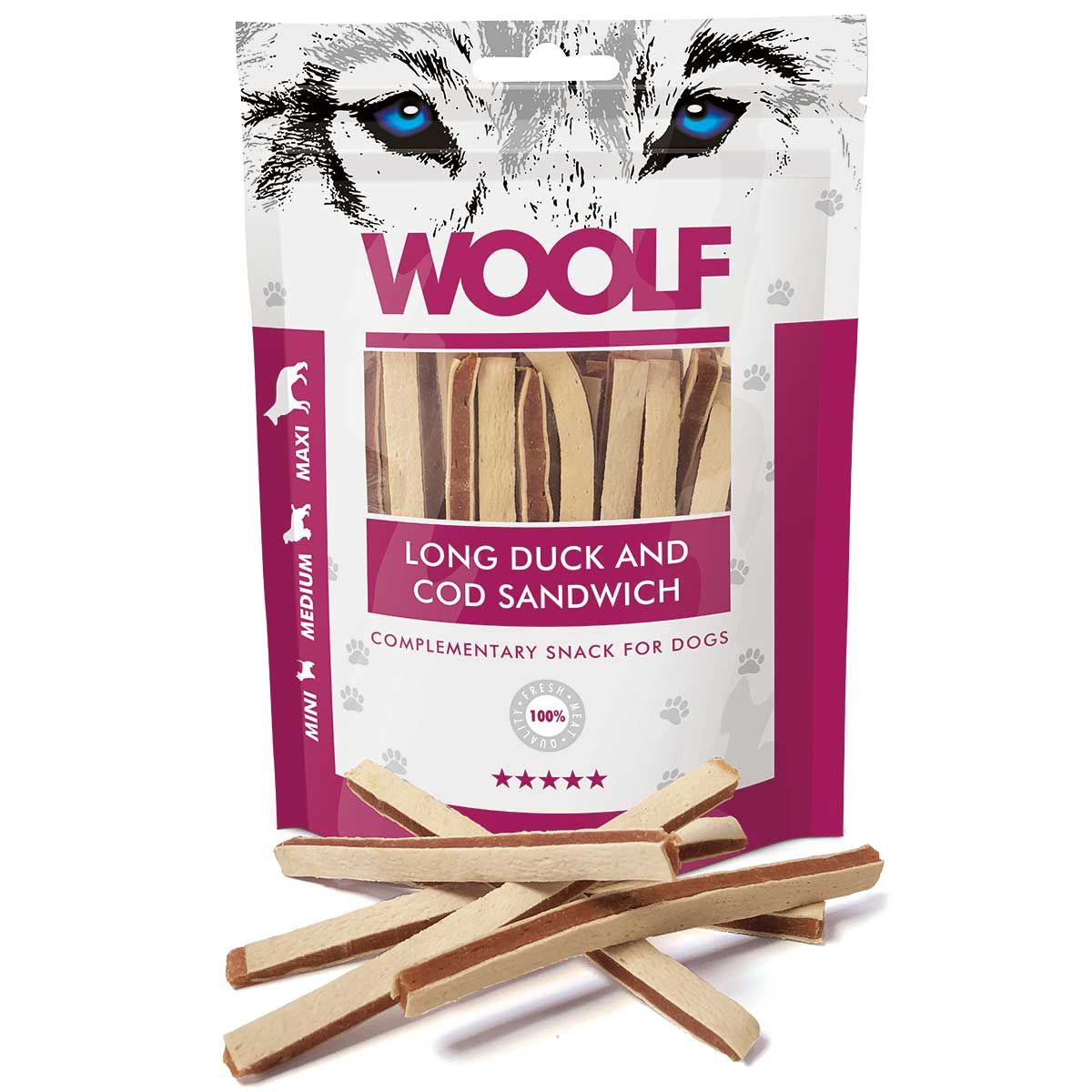 Woolf friandise pour chiens sandwich canard-cabillaud 100 g