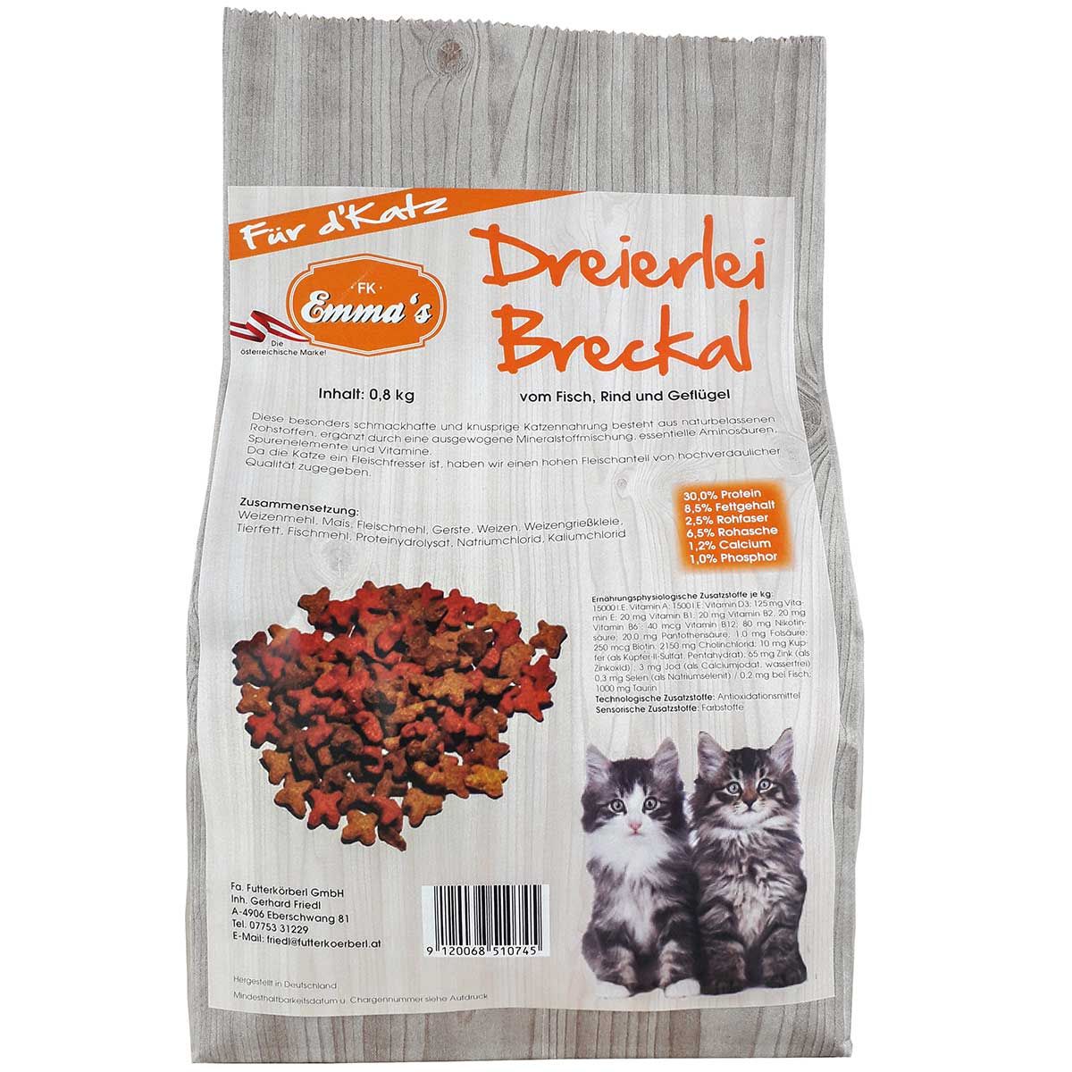 Emmas Aliments pour chats trois sortes de Breckal à base de poisson, de bœuf, de volaille 0,8 kg