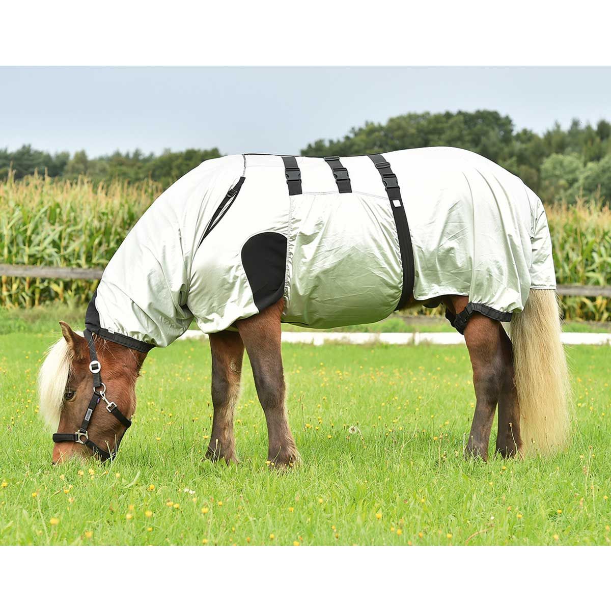 La couverture anti-démangeaisons strong von BUSSEconvainc par sa bonne tenue, faite d'un matériau élastique, stable et respirant. La couverture couvre tout le cou, la poitrine et le ventre jusqu'à la queue, et protège ainsi également contre les mouches et les insectes piqueurs