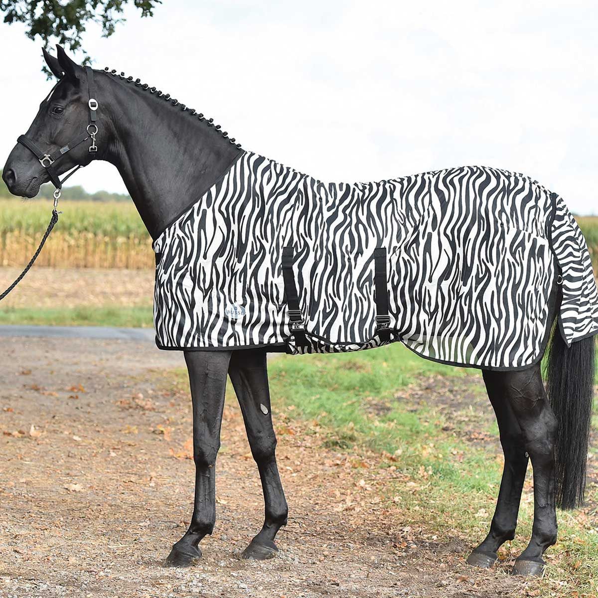 1x BUSSEpaddock fly blanket zèbre, avec bavette ventrale