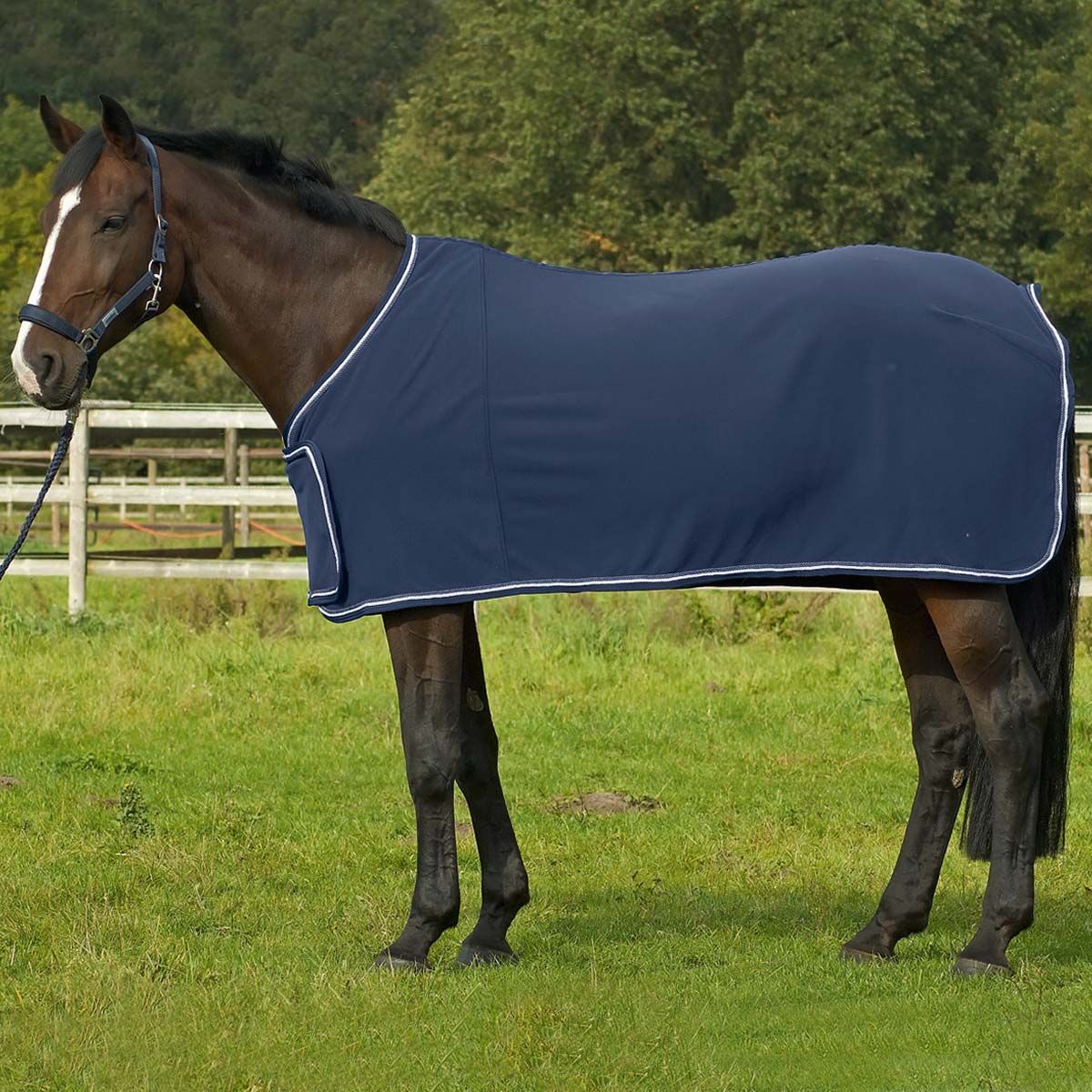 La couverture de cheval particulièrement élégante en matériau fonctionnel pour le transport ou l'écurie.