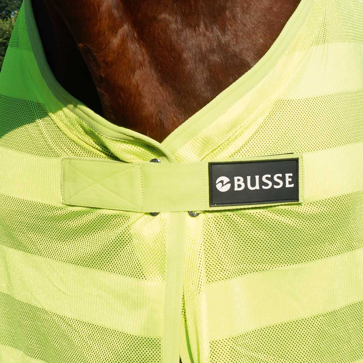 Le tissu en maille de polyester offre une respirabilité optimale, tandis que la sangle dorsale et la boucle de poitrine avec fermeture velcro supplémentaire garantissent un maintien sûr. De couleur jaune phosphorescente, cette couverture offre non seulement la sécurité, mais elle est également très belle sur votre cheval. N'hésitez pas à choisir la couverture réfléchissante BUSSE REFLECTION pour une expérience d'équitation sûre et confortable.