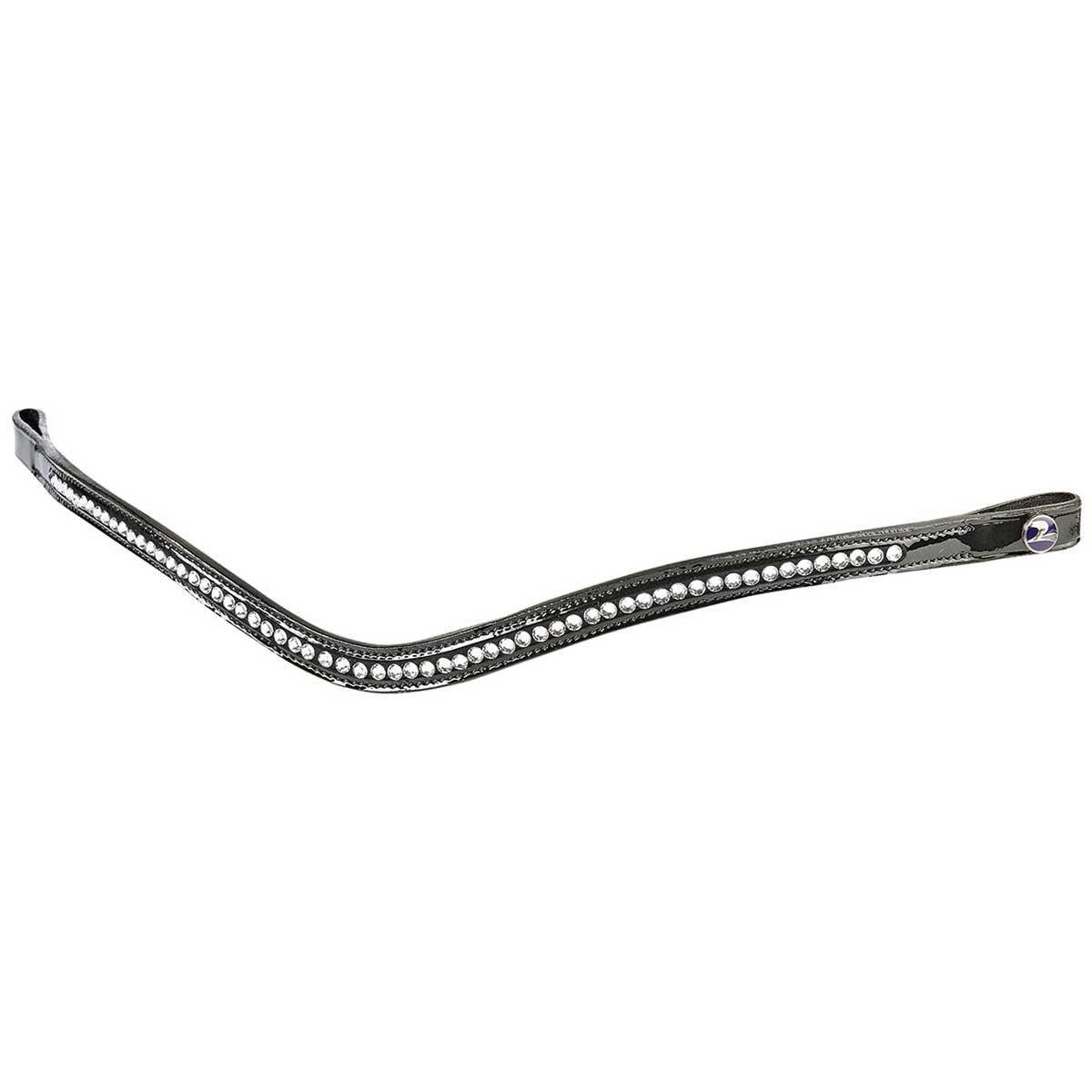 - bandeau frontal courbé en cuir verni avec des pierres de cristal blanc étincelant