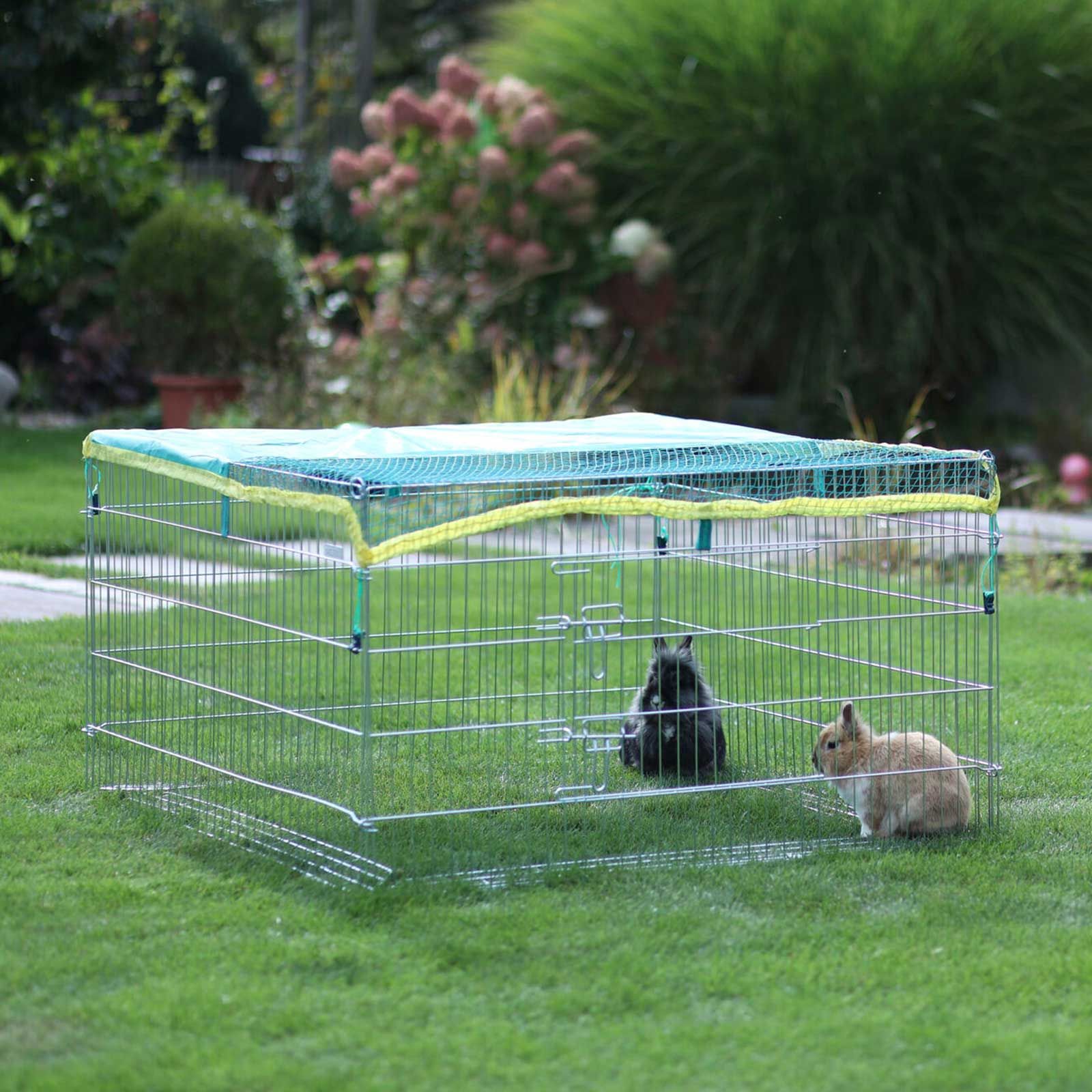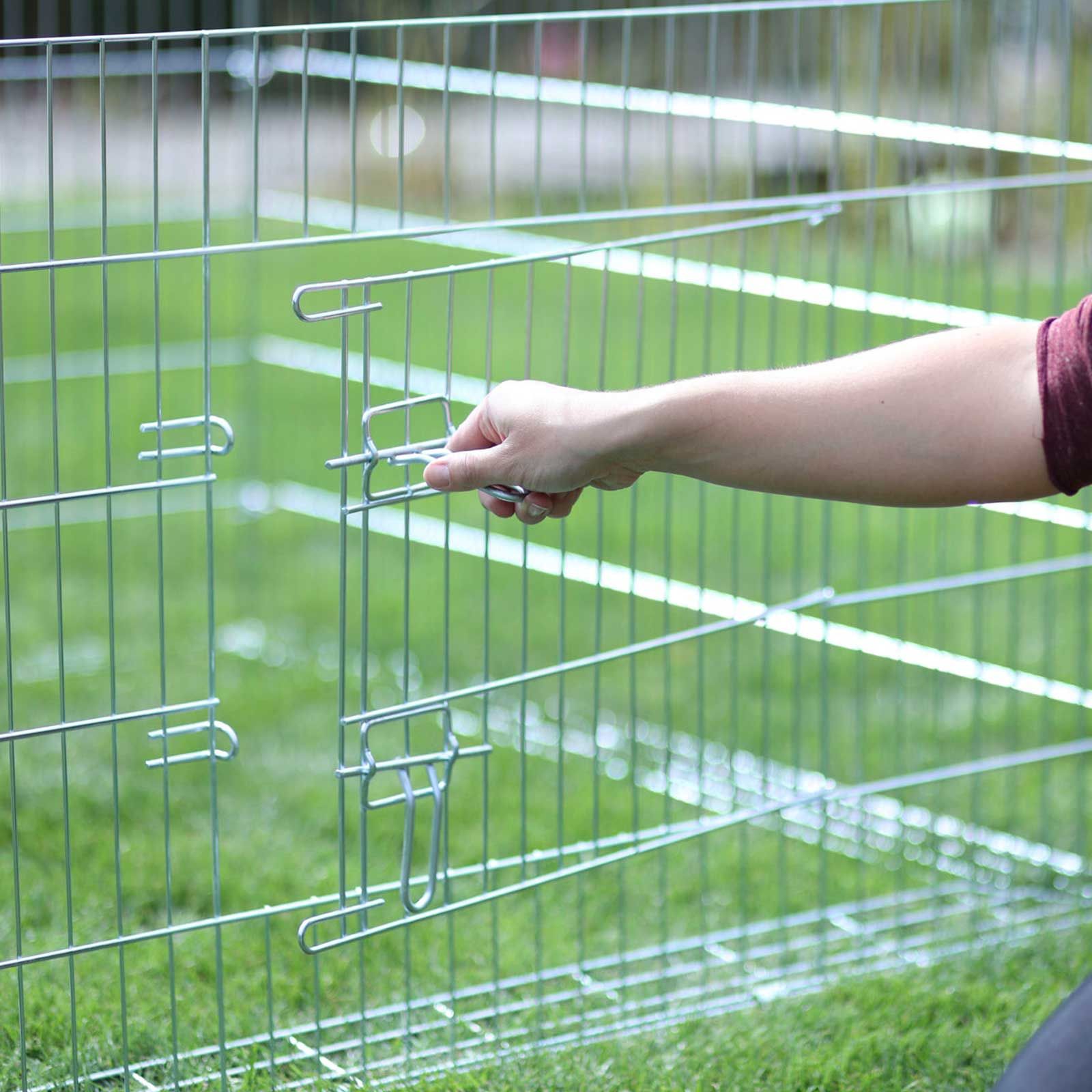 Cet enclos galvanisé avec barrière anti-fugue offre une protection totale à votre animal. Grâce à la barrière anti-fugue unique en son genre placée sur le bord de l'enclos, votre petit roi du pelotage ne pourra pas s'échapper de l'enclos. Le filet de protection protège vos petits des hôtes indésirables comme les chats, les fouines ou les oiseaux de proie. La protection solaire intégrée offre suffisamment d'ombre les jours de grande chaleur.