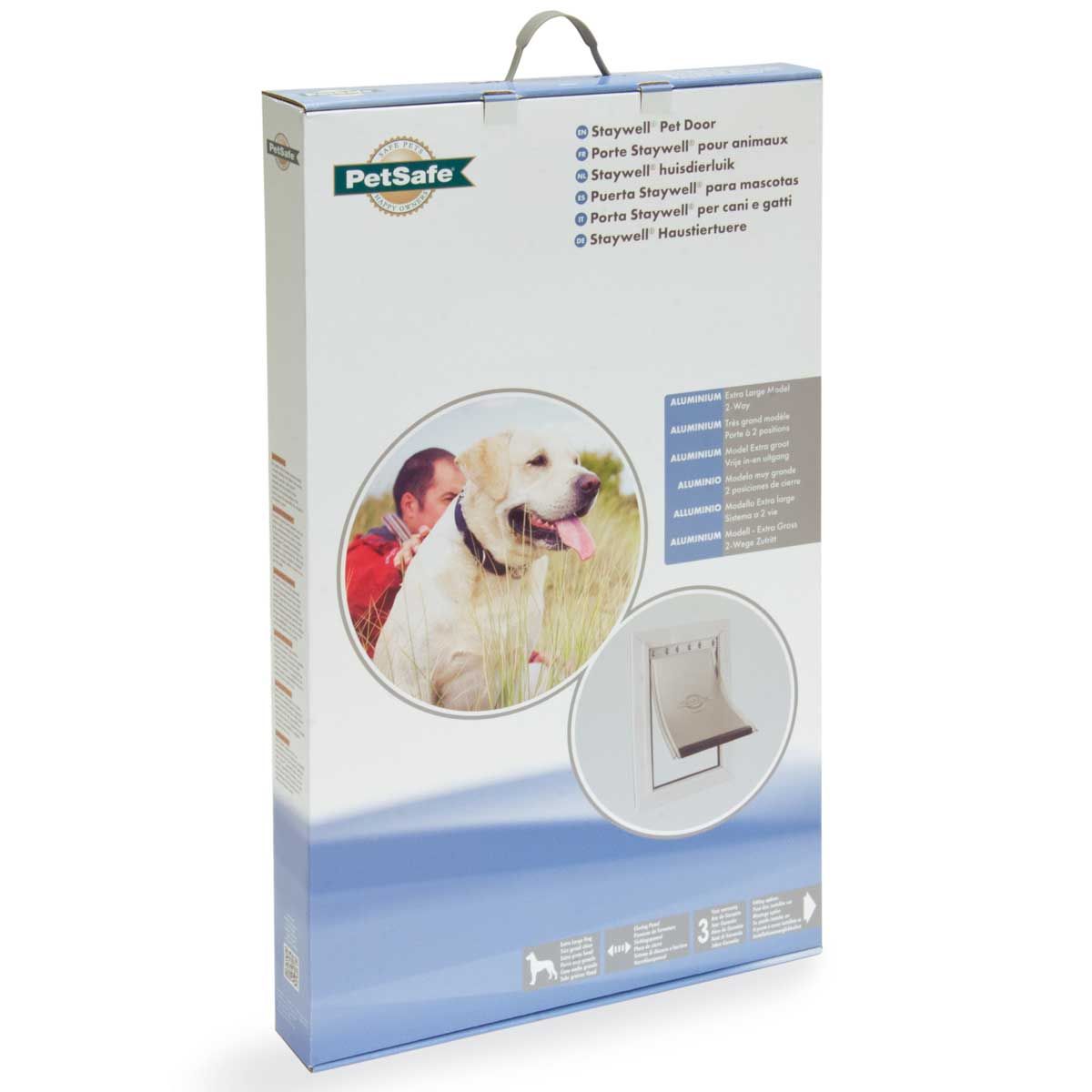 La trappe pour chien originale Staywell Petsafe Staywell 660 en aluminium avec un volet fixe en plastique est extrêmement robuste et convient aux grands chiens jusqu'à 100 kg. La porte pour chien peut être verrouillée de l'intérieur.