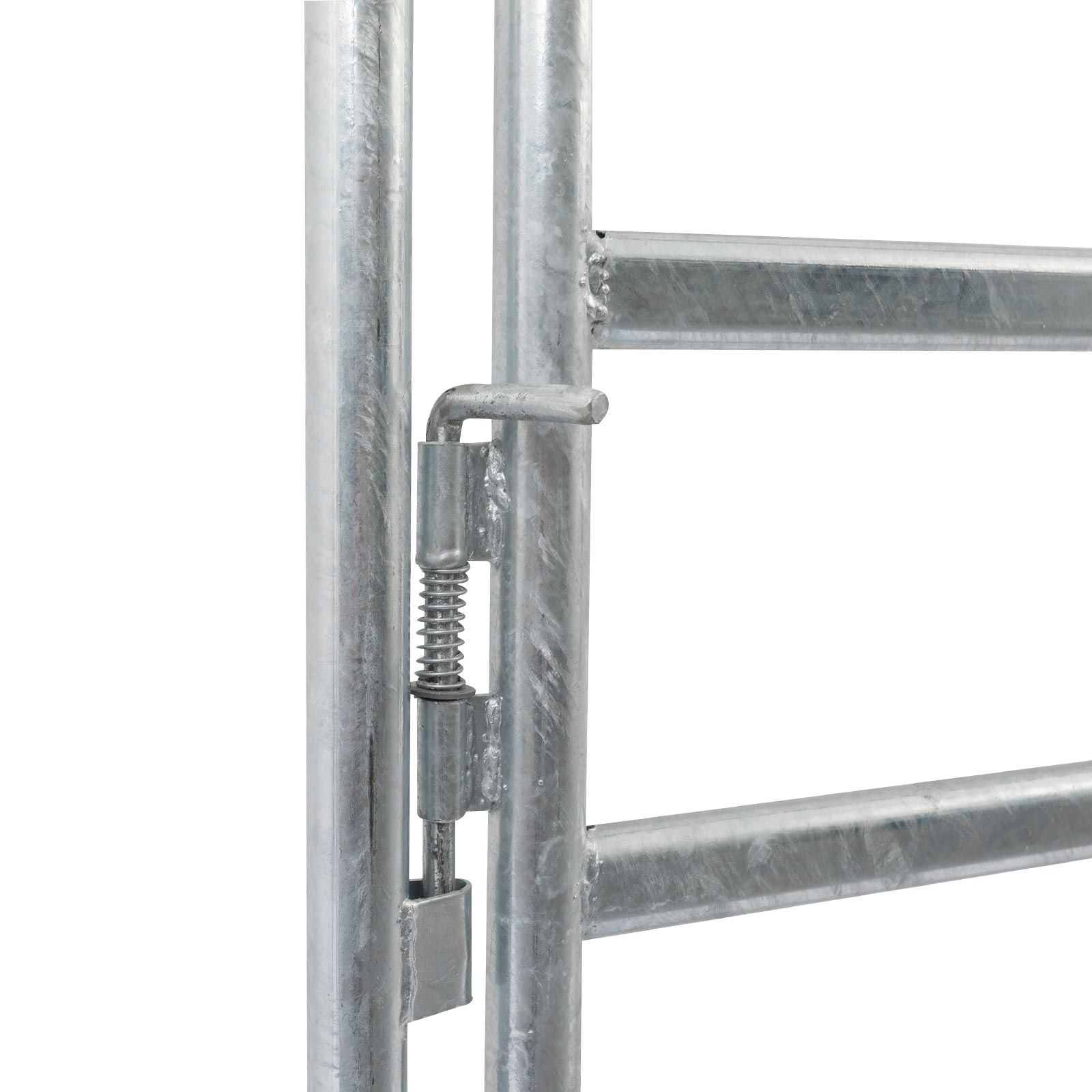Le panneau de clôture de pâturage sans porte est idéal pour la construction d'enclos mobiles et flexibles, ainsi que de boxes et d'étables temporaires. Les panneaux sont également très bien utilisés pour les clôtures des clubs d'équitation et les lieux de course. La hauteur atteinte par les panneaux est de 160 cm au dernier tube, tandis que la structure totale atteint 170 cm. Équipés d'un support de sécurité, les panneaux empêchent les personnes ou les animaux de se blesser accidentellement. La fermeture rapide de la chaîne facilite et accélère la connexion de plusieurs panneaux. Les panneaux de clôture de pâturage atteignent un haut degré de stabilité avec un faible poids, grâce également à une forme de pied fermée. Tous les panneaux sont entièrement galvanisés à chaud.