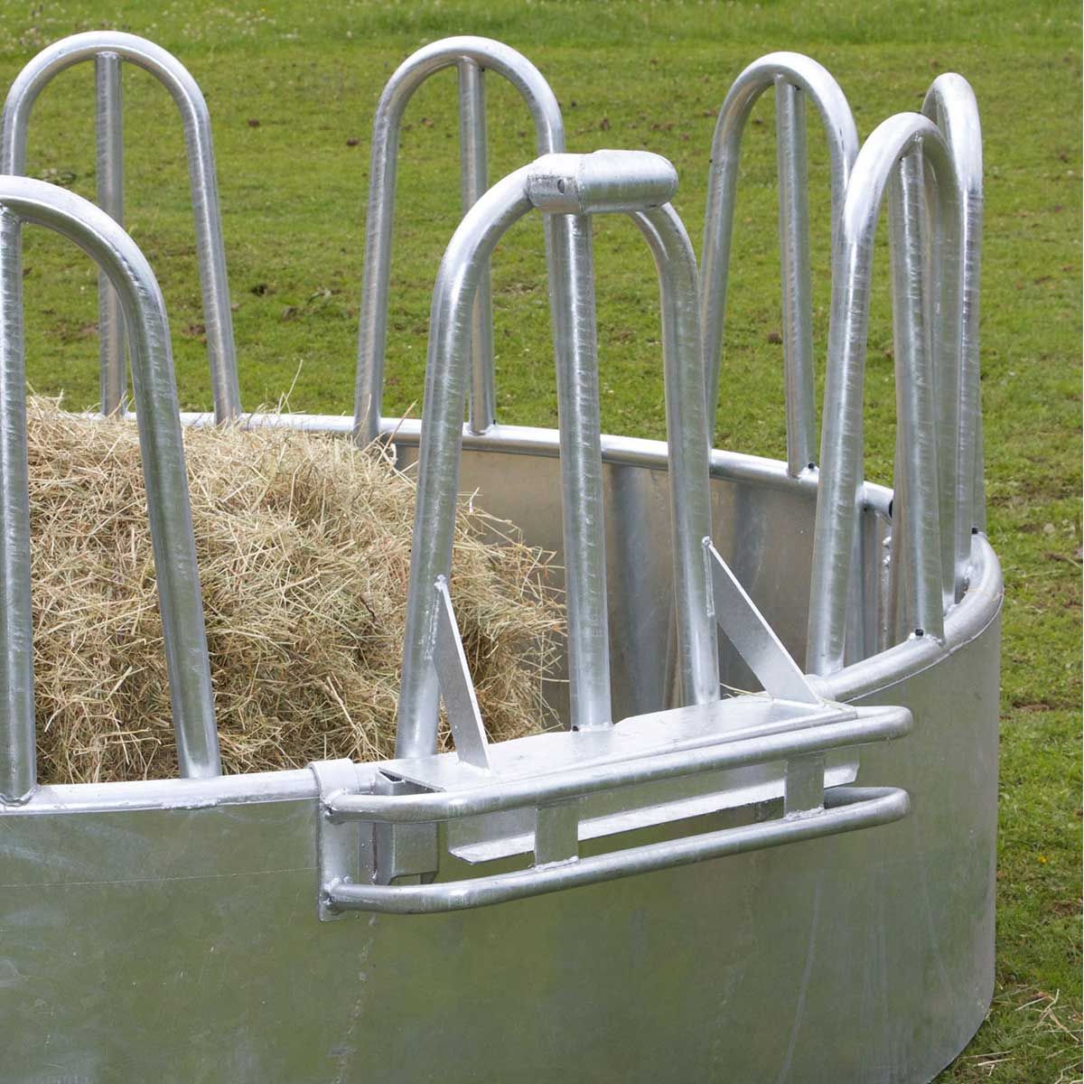 Le râtelier rond offre 12 places d'alimentation et empêche le fourrage de se répandre dans le pré.