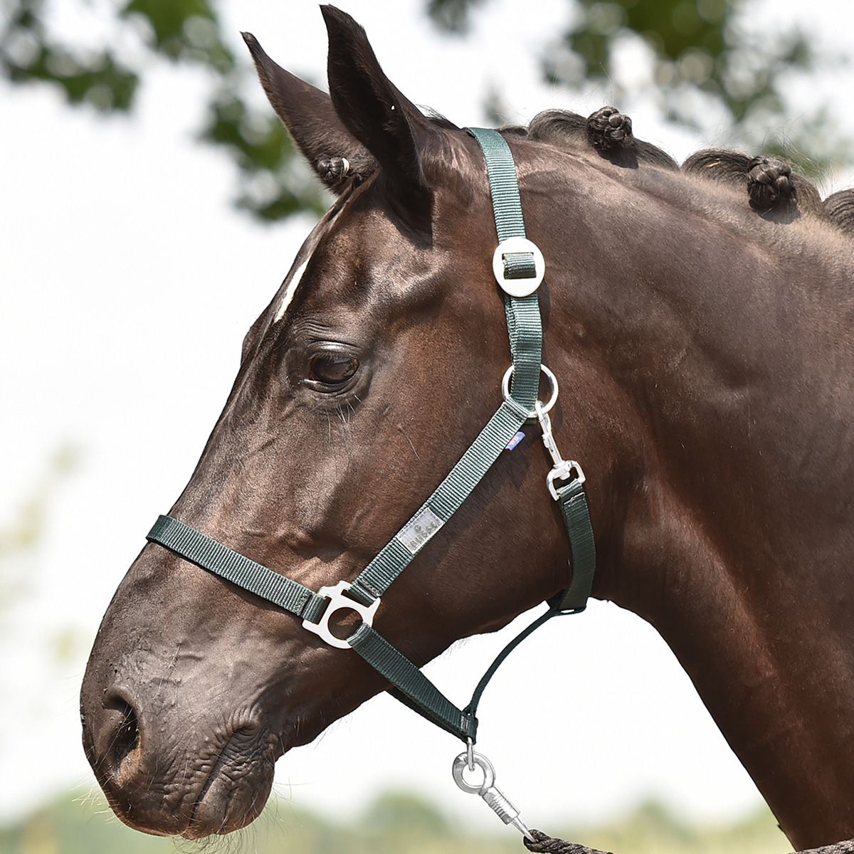 - simple, sturdy webbing headcollar with silver-coloured fittings