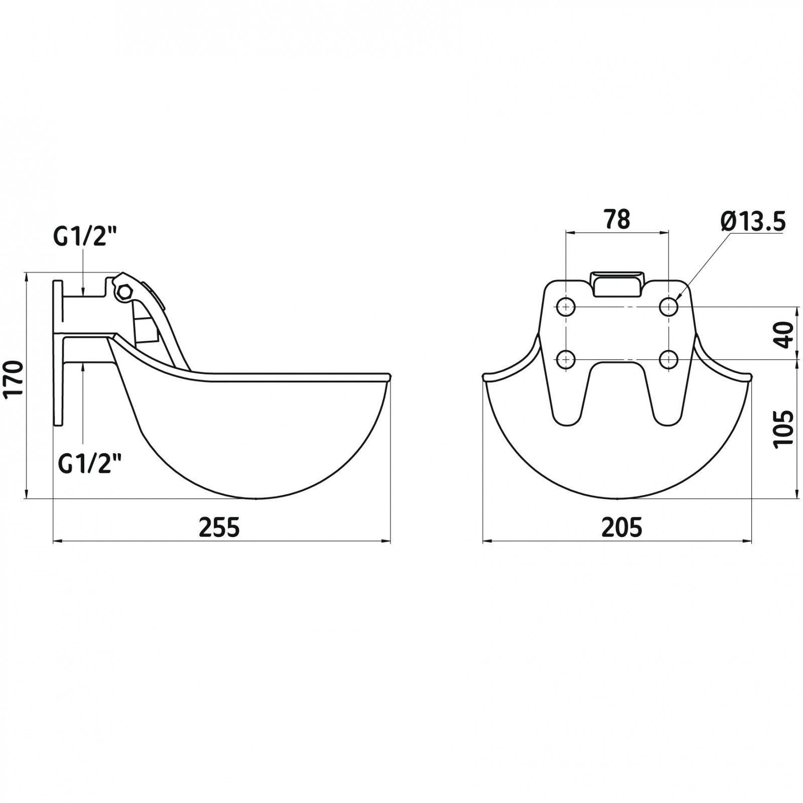 Le Abreuvoir pour bétail et chevaux en fonte grise robuste est équipé d'un Languette de pression en acier inoxydable équipé. Par le biais de den Raccordement à l'eau de 1/2 pouce peuvent être connectés par le bas et par le haut. Avec un Volume du bassin de 1,45 litres vos animaux sont alimentés de manière optimale en eau. L'abreuvoir pour le bétail et les chevaux peut non seulement être fixé au mur, mais il convient également parfaitement au montage sur un tuyau.