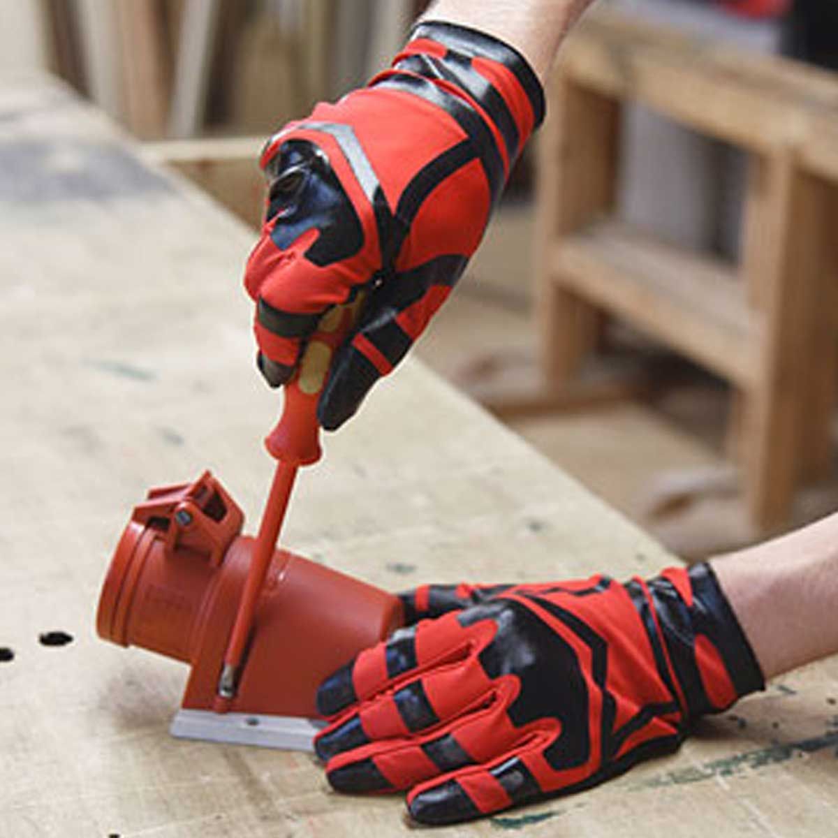 Le gant est fait de 0,5 mm ultra fin et pourtant matériau synthétique durable et offre des conditions parfaites pour les travaux délicats. Le gant de travail est équipé de lycra intégral enduit pour une totale liberté de mouvement et un grand confort, le gant est comme une seconde peau Le matrice en nid d'abeille de silicone sur les doigts et les paumes offre une prise optimale et les zones exposées sur le dos de la main sont renforcées par du silicone. Les points forts sont les suivants des doigts conducteurs pour l'utilisation d'écrans tactiles.