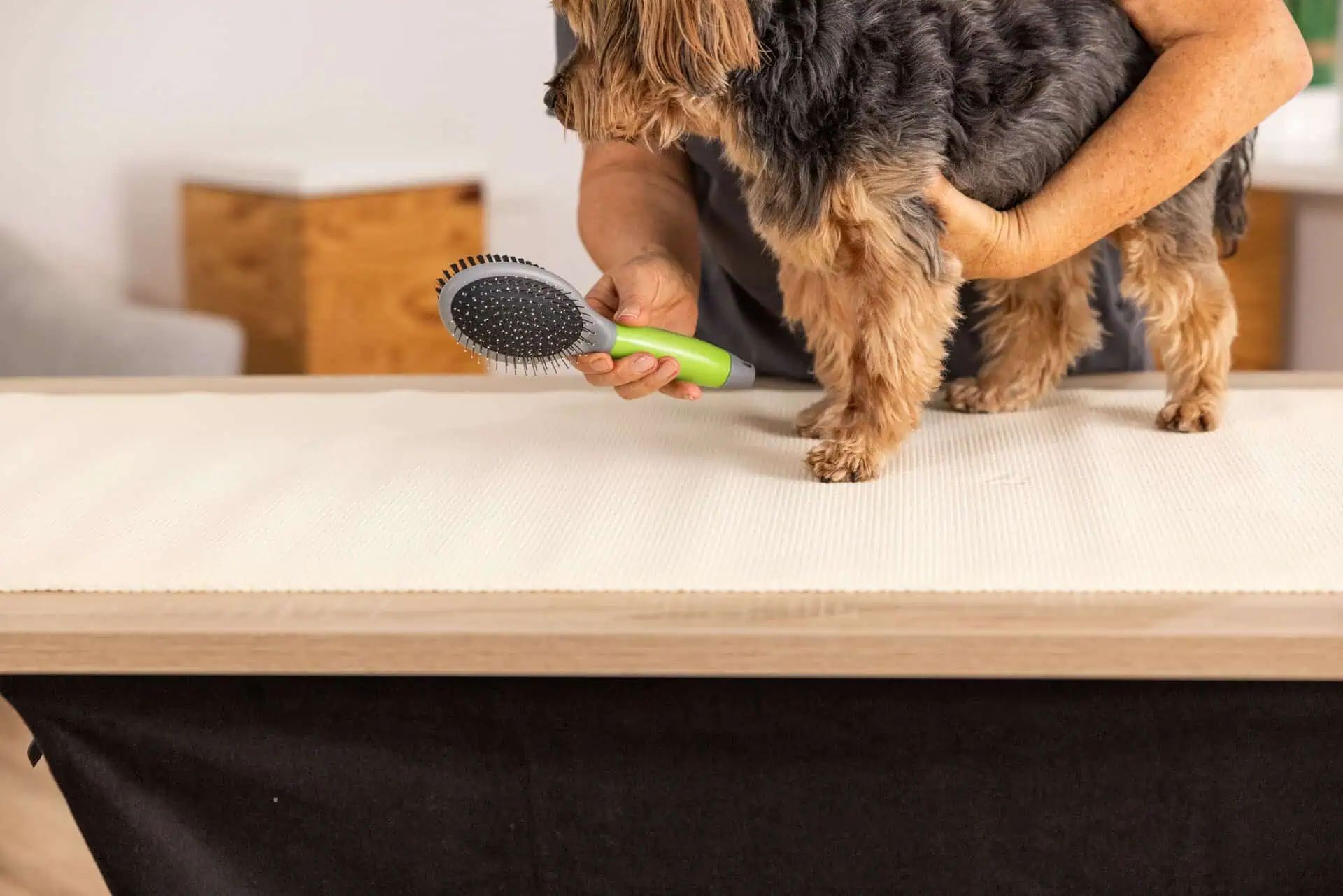 Nous recommandons d'utiliser la brosse au moins une fois par semaine pour éliminer les poils morts et les nœuds et pour maintenir un pelage sain.