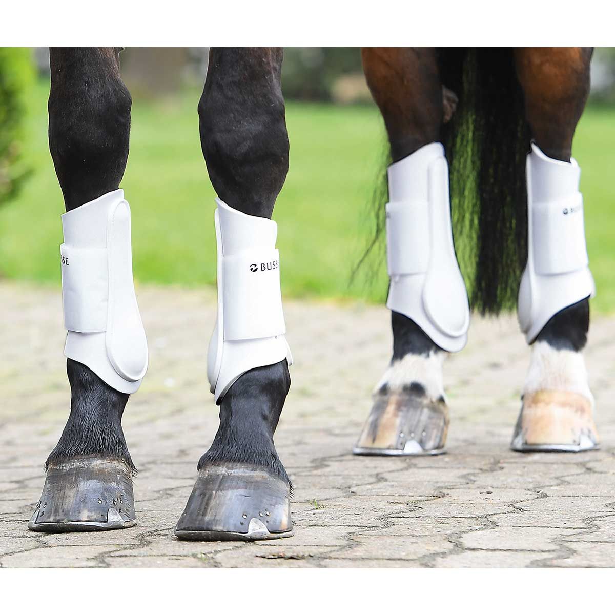 Les guêtres offrent une protection aux jambes du cheval pendant l'entraînement. Lors de l'utilisation de guêtres en fourrure, la température extérieure doit être prise en compte afin de minimiser le risque d'échauffement des jambes du cheval. Il est important de n'enfiler les guêtres que peu de temps avant le début de l'entraînement et de les retirer immédiatement après la fin de l'entraînement. Cela évite une accumulation inutile de chaleur. Vérifiez régulièrement la température des jambes du cheval pendant et après l'utilisation des guêtres et refroidissez-les si nécessaire pour éviter toute surchauffe.