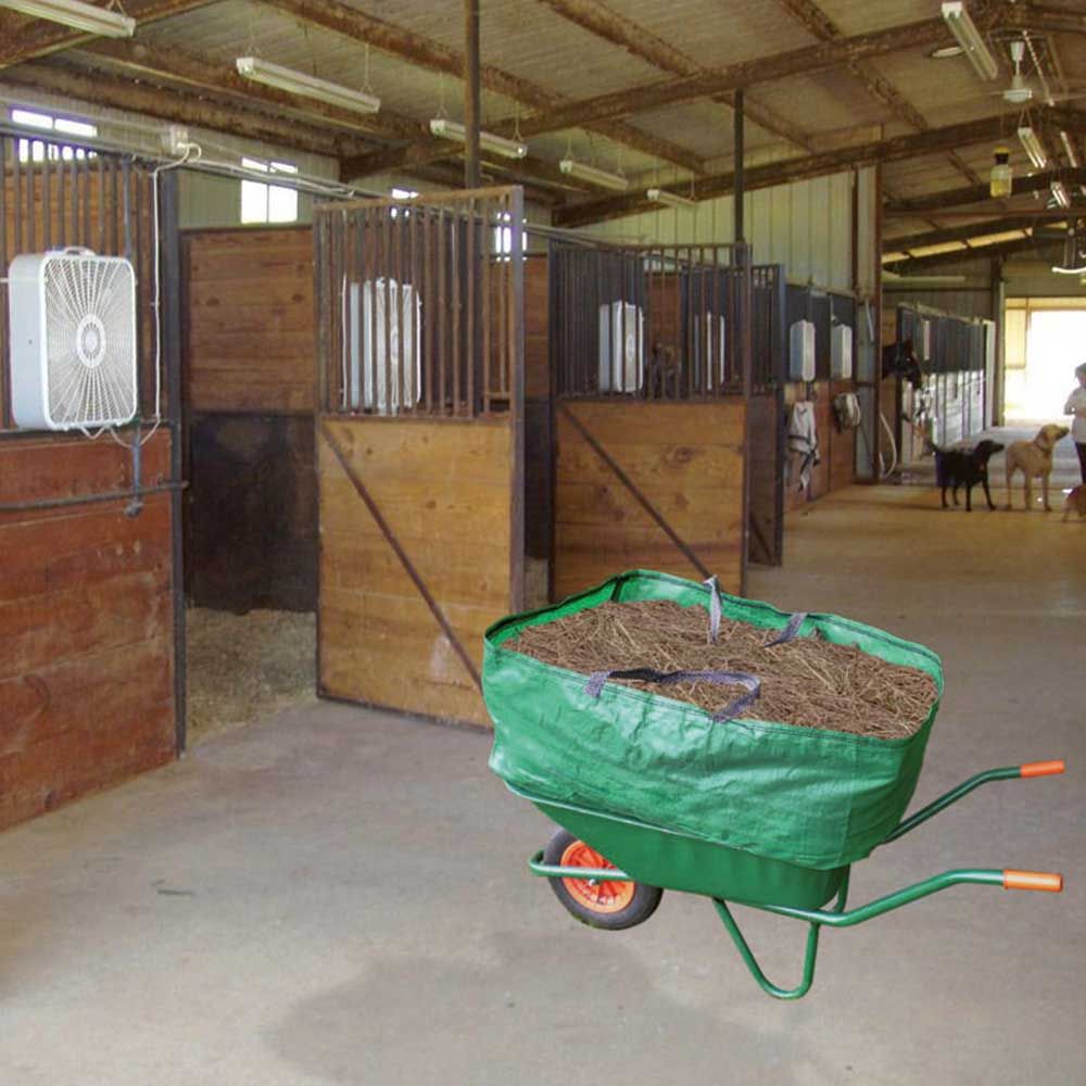 Le sac à dos est un sac de transport polyvalent pour l'écurie, la cour et le jardin. Idéal pour augmenter le volume de remplissage des brouettes. Le sac est très robuste et résistant à la déchirure, il convient par exemple pour le foin, la paille, les feuilles ou l'herbe coupée.