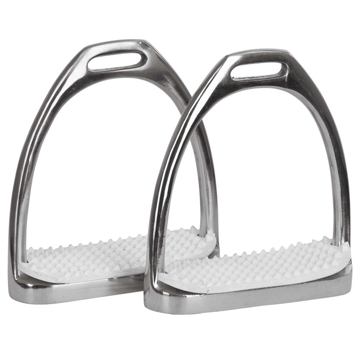 EtrierKerbl classique avec incrustation de caoutchouc blanc. Ici, vous obtenez deux étriers en acier inoxydable avec une semelle ouverte