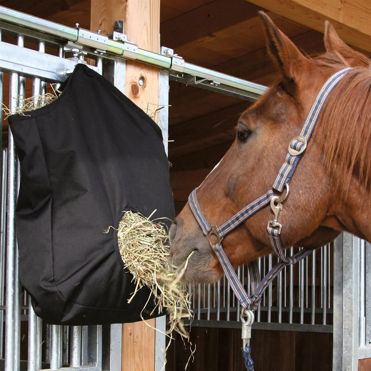Le Sac à foin pour chevaux est idéal pour les tournois, pour le transport dans une remorque ou pour l'écurie. Le sac à foin est fait de 100 % de polyamide et possède 2 anneaux de suspension stables.