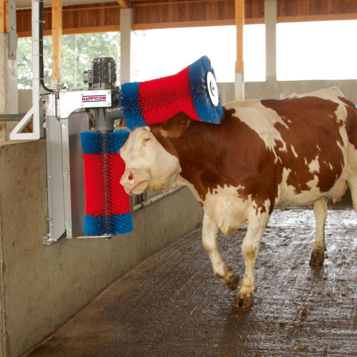 Les bovins ont besoin de se frotter et de se gratter. Ils se nettoient ainsi et se débarrassent des parasites, des lichens et des acariens. Le brossage stimule et favorise la circulation sanguine. L'utilisation d'une brosse mécanique ou d'une brosse à vaches contribue de manière essentielle au bien-être de l'animal et constitue donc une condition essentielle pour une production laitière élevée. Les animaux deviennent plus calmes, leur bien-être augmente. Nos brosses électriques pour bétail sont faciles à installer. Un capteur empêche les poils de la queue de s'accrocher. Toutes les pièces du cadre sont en matériau galvanisé et ont été testées pour une utilisation dans les conditions difficiles des étables. En outre, les brosses Duo et Swing sont équipées d'une commande intelligente avec écran. Le manuel détaillé joint à chaque brosse contient toutes les informations importantes pour l'installation, l'entretien et le dépannage. Les brosses électriques pour bovins ne nécessitent pratiquement aucun entretien. Une lubrification appropriée des points de pression et le remplacement opportun du rouleau augmentent la durée de vie et l'attrait pour les animaux.
