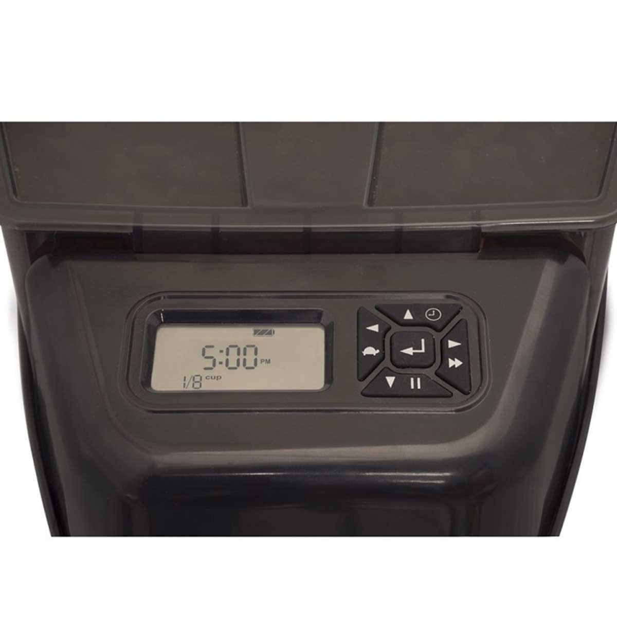 - Programmable - easily set the number of meals, meal times, and portion size