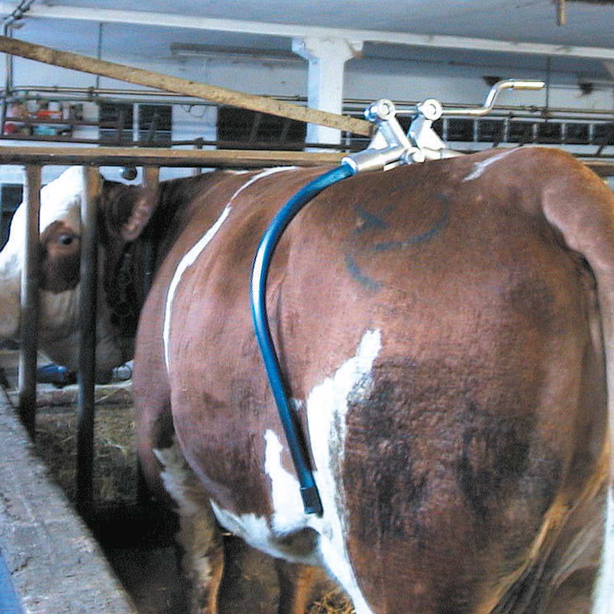 Un système de retenue de la hanche de la vache empêche celle-ci de donner des coups de pied, même aux animaux particulièrement têtus.