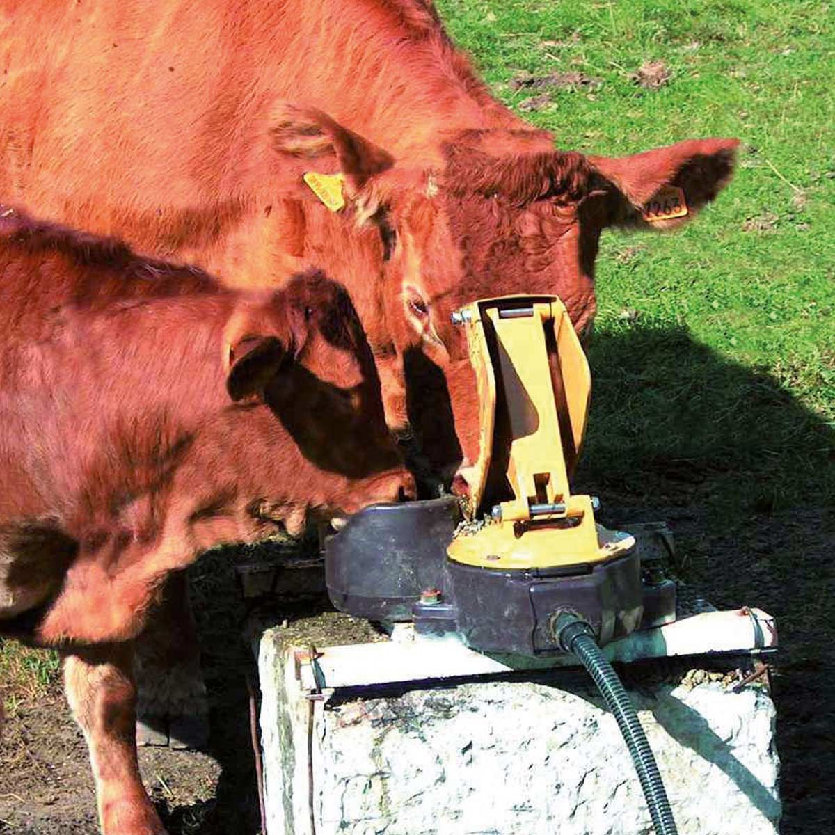 Le Pompe à pâturage aquamat ii mk est parfaitement adapté à l'élevage des vaches allaitantes, car la vache allaitante et le veau peuvent boire en même temps grâce à la pompe à pâturage qui fonctionne très bien. L'eau douce et propre est toujours disponible. L'abreuvoir de pâturage pompe l'eau à partir d'une profondeur de 7 m ou d'une longueur maximale de 70 m et convient pour les soins de 10 à 15 animaux.
