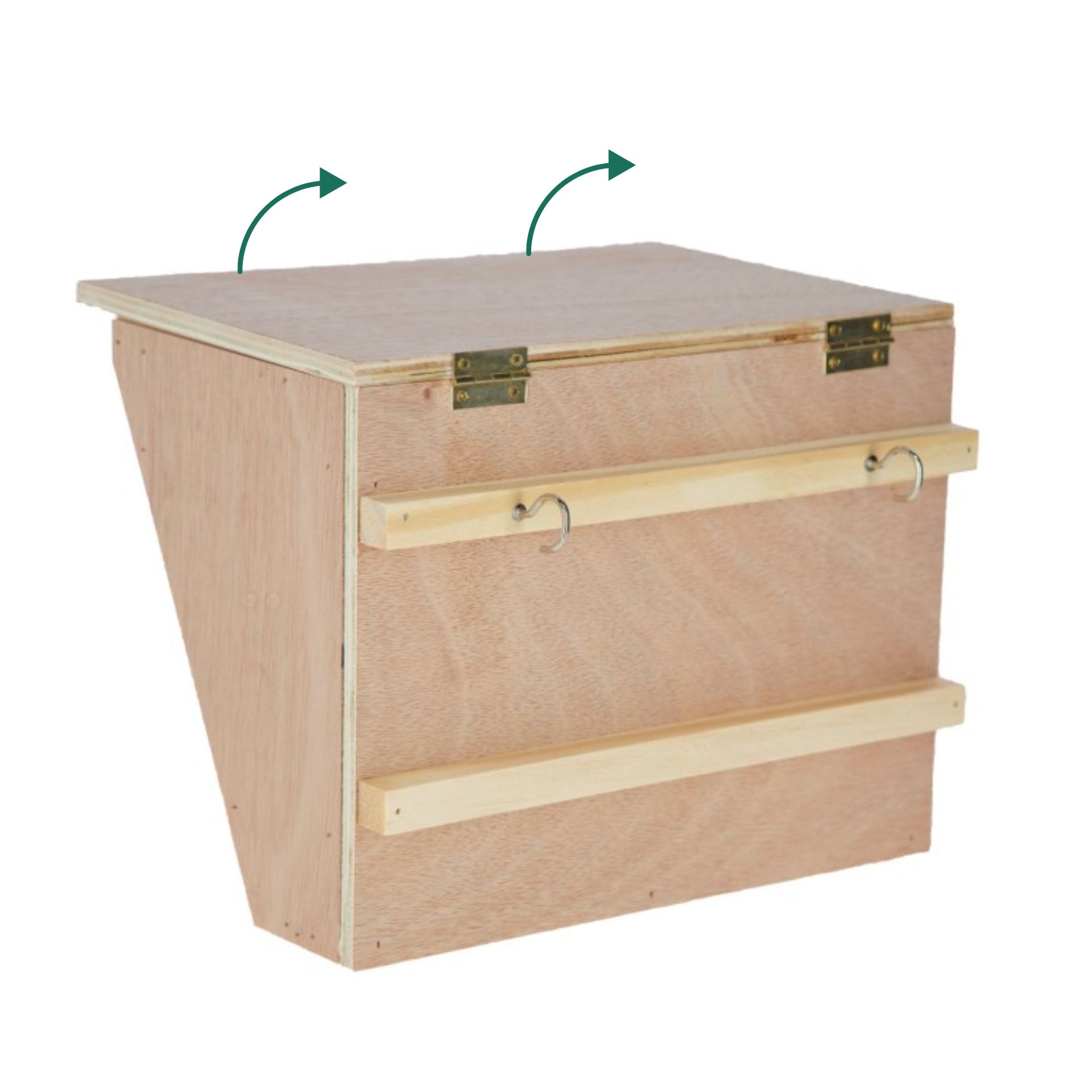 Ce râtelier à foin évite les salissures et les blessures dues aux sauts dans le foin. En même temps, vos rongeurs utiliseront volontiers la planche pour s'asseoir comme terrasse d'observation. Ce râtelier à foin en bois dispose d'une nouveauté très pratique : il est doté d'un clapet en bois qui permet de fermer et de rouvrir le râtelier.