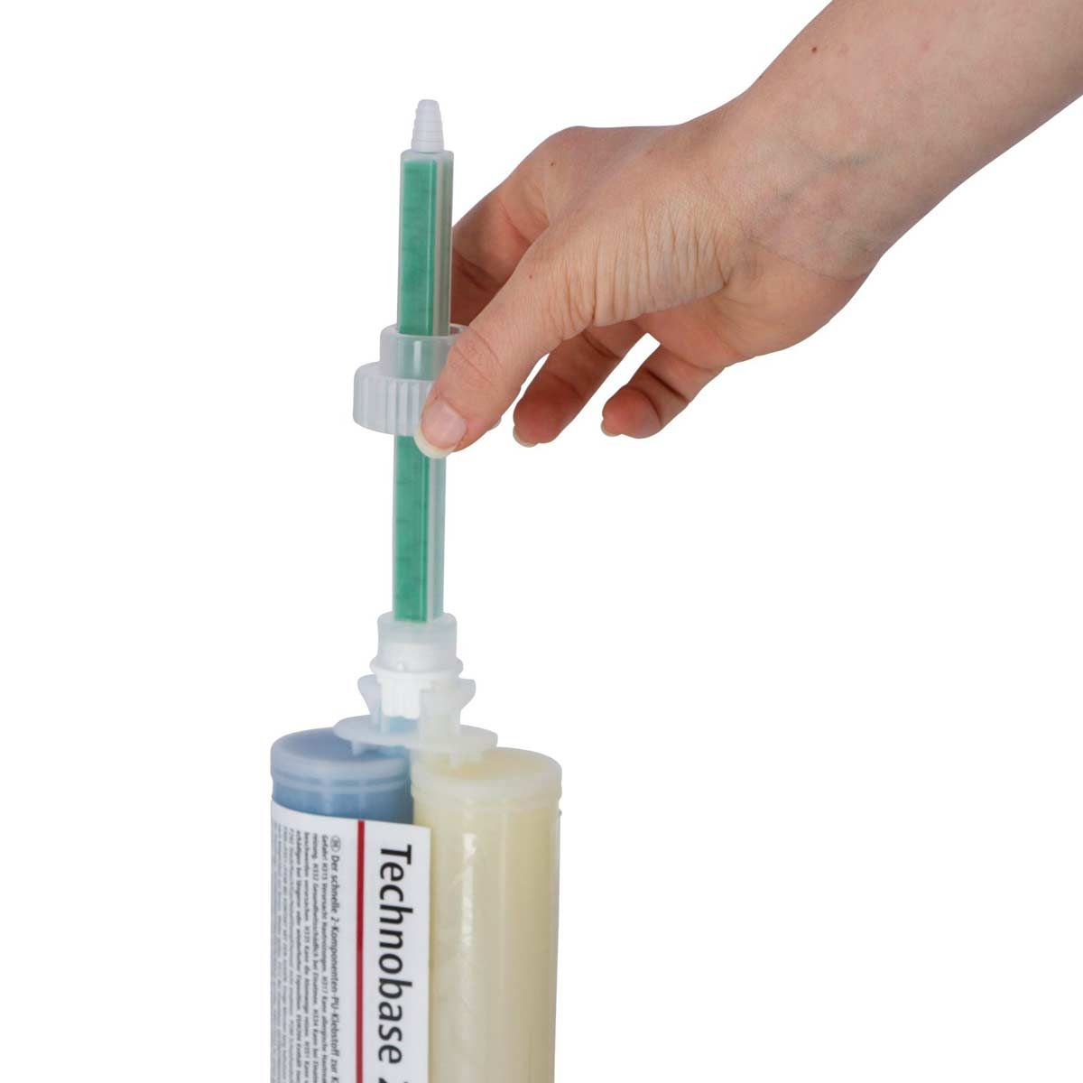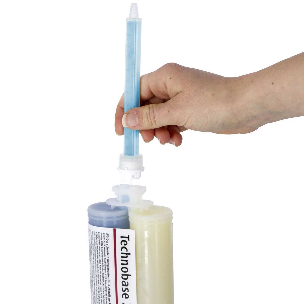 - Le montage correct des canules de mélange spéciales est un jeu d'enfant grâce aux goupilles de positionnement spécifiées et garantit le bon rapport de mélange avec le moins de déchets possible