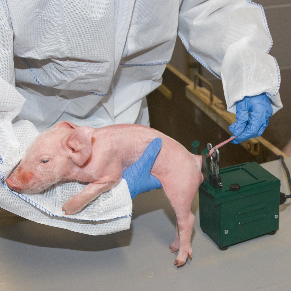 Au cours du processus d'accostage, la queue des porcelets nouveau-nés est brûlée et, en même temps, les navires sont fermés. L'étanchéité immédiate des vaisseaux empêche la pénétration des agents pathogènes. Habituellement, les queues sont laissées à environ 2 à 3 cm de long. La raison de l'accostage est d'éviter le cannibalisme chez les porcs, qui peut être causé par de longues queues en phase d'élevage et d'engraissement.