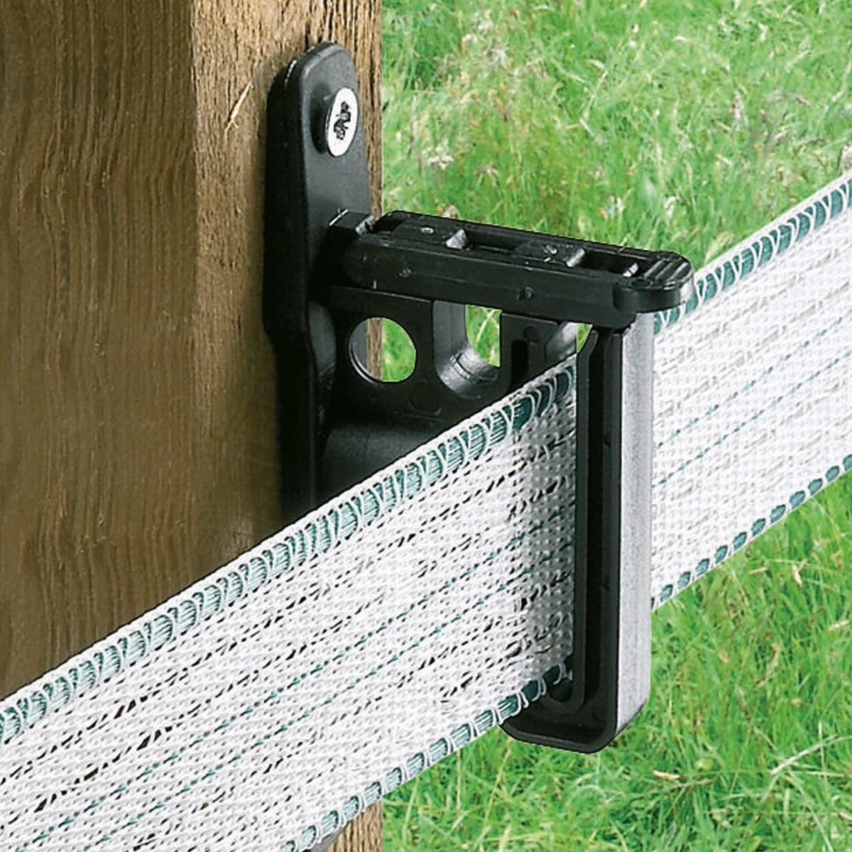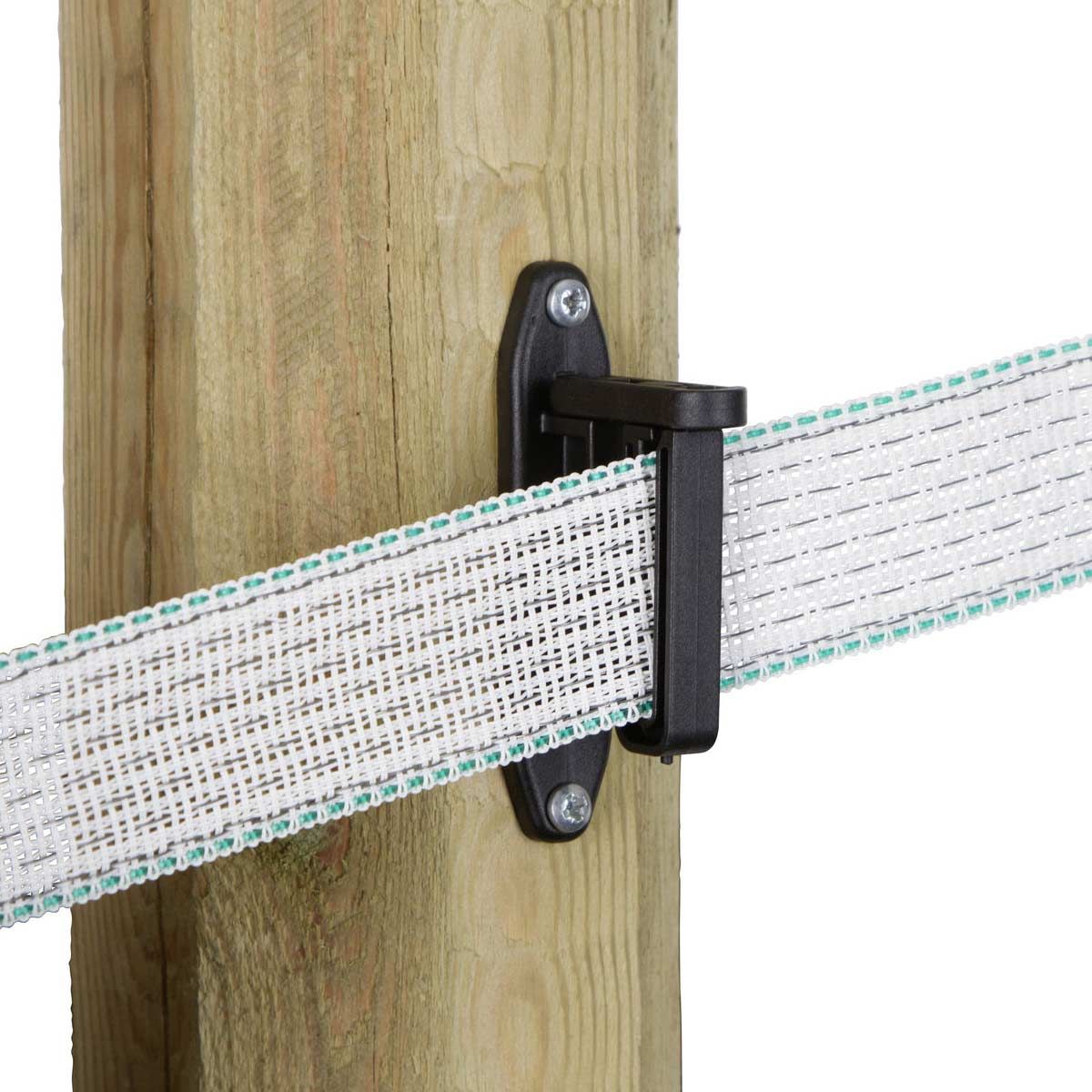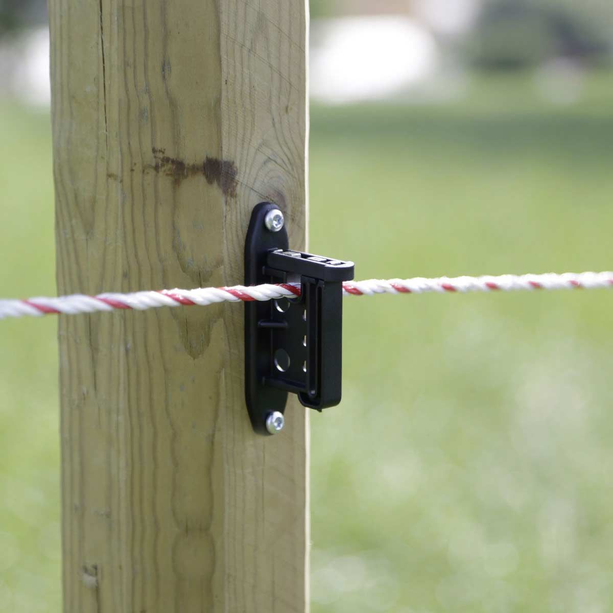 - Poteaux de tension/coins/porte: Nous recommandons les poteaux Octo AKOWood avec une garantie de 10 ans. Comme ces poteaux ne sont pas faits de bois dur, les isolateurs à vis sont relativement faciles à visser.