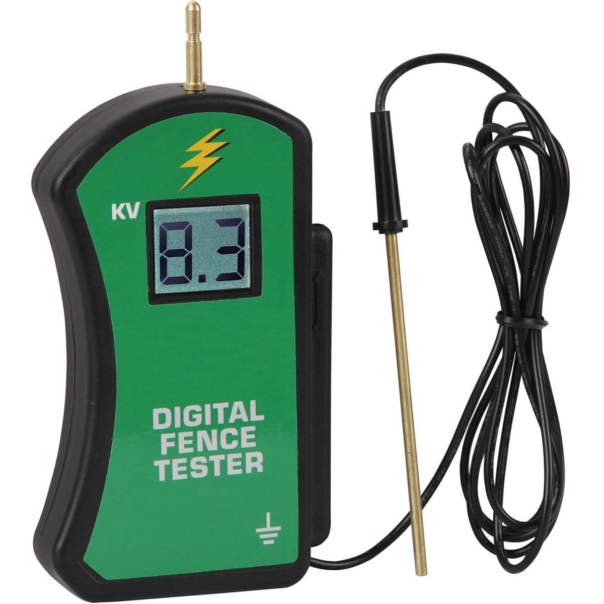 Ce testeur avec affichage numérique de la marque est Kerblidéal pour mesurer en continu la tension de la clôture électrique. La plage de mesure du testeur de clôture est comprise entre 0 et 9900 volts. Le testeur de clôture permet de mesurer facilement la tension de sortie et la mise à la terre de la clôture électrique. Le voltmètre numérique tient bien dans la main grâce à sa forme ergonomique, il est confortable et sûr à utiliser et généralement indispensable pour vérifier une clôture. Le support pour la tige en laiton, les entailles pour l'enroulement serré du câble et la pochette de ceinture rendent le voltmètre numérique très facile à transporter et à ranger.