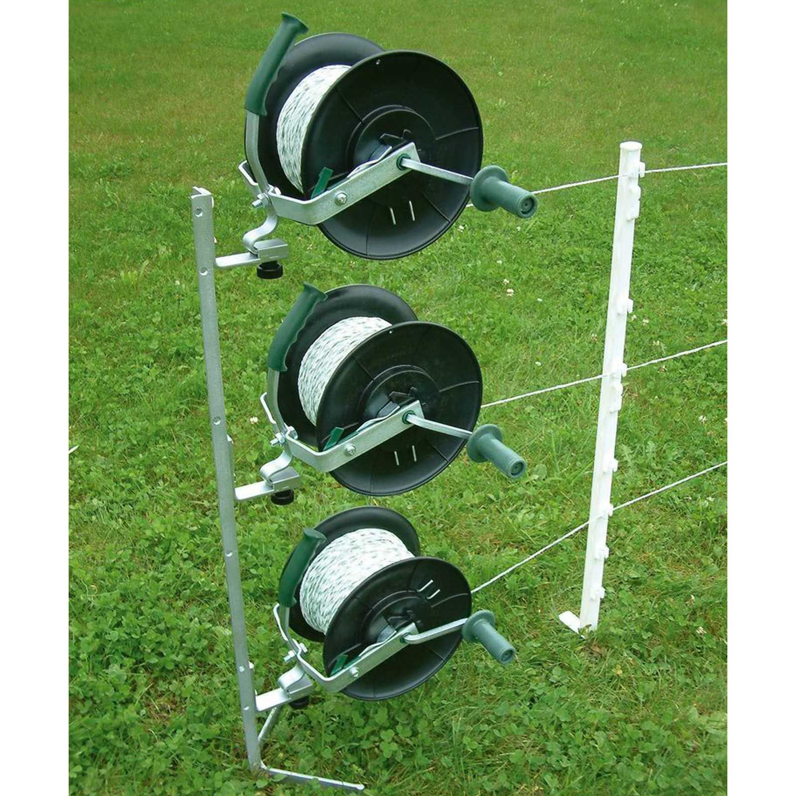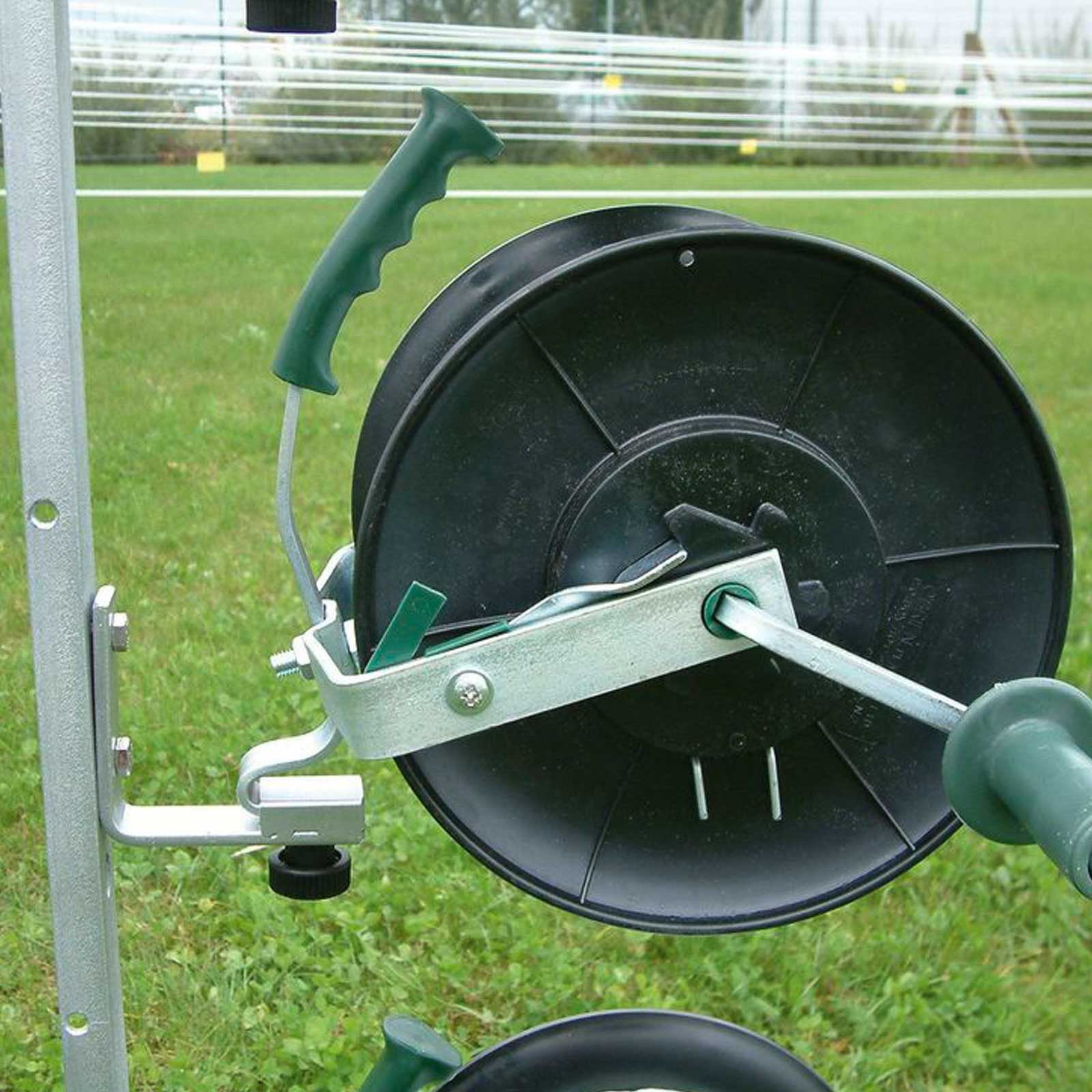 Le poteau métallique de Kerblest le poteau approprié pour les flexiclôtures en plomb. Il vous propose des oeillets de différentes hauteurs. Il peut servir de départ de clôture, de poteau d'angle, de portail et de poteau de ligne. De plus, il peut aussi être utilisé à merveille comme poste de bobinage. Parfait système d'enroulement professionnel pour les systèmes de clôture mobiles qui doivent être montés et démontés rapidement, ce poteau polyvalent est une "aide" irremplaçable dans la construction de clôtures modernes. Pour de nombreuses années d'utilisation.