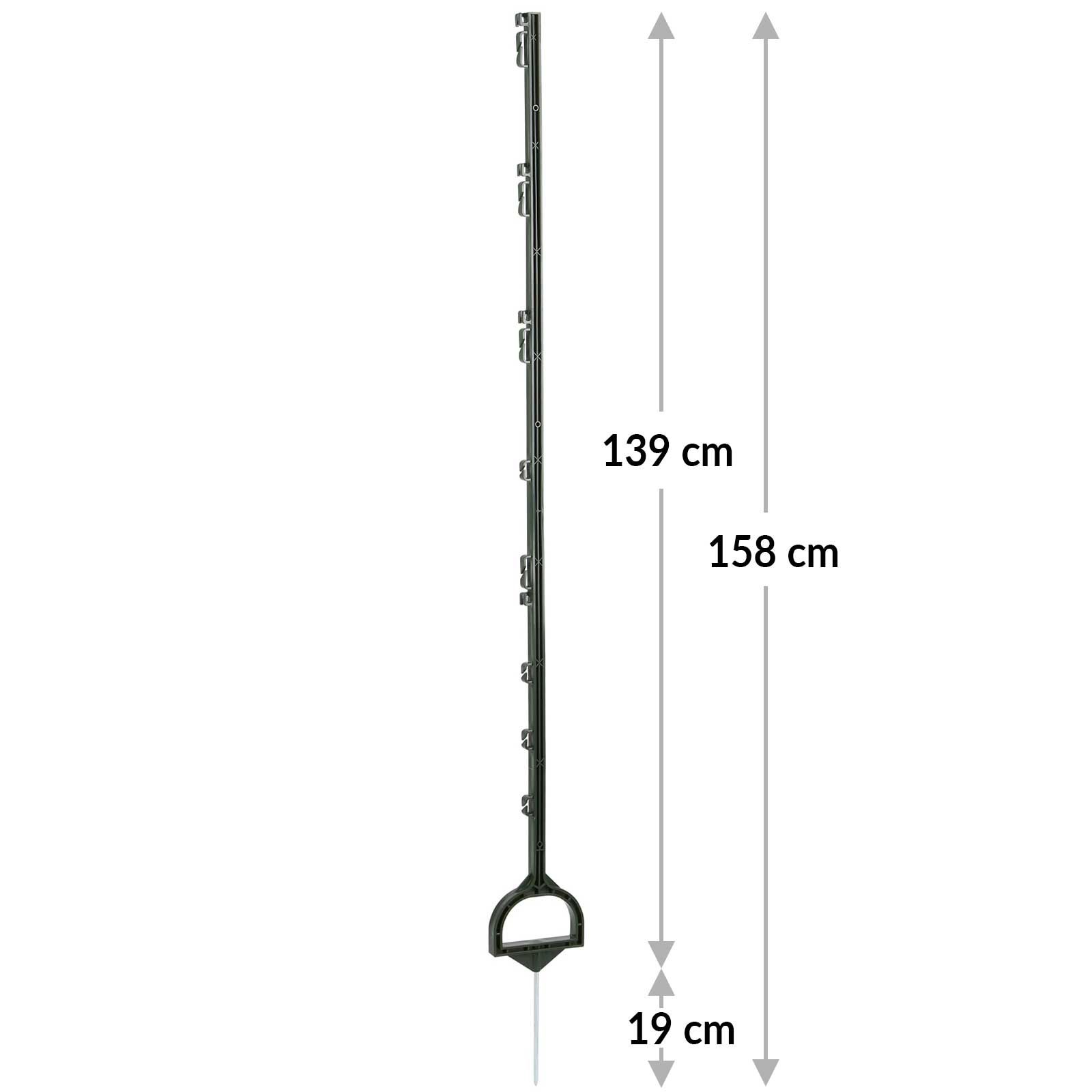 Les piquets avec étrier renforcés de fibres de verre sont le choix parfait pour tous ceux qui recherchent un piquet de clôture en plastique robuste et flexible. Les piquets mobiles en plastique conviennent parfaitement pour repousser le gibier ainsi que pour clôturer les bovins, les chevaux & Co. Avec une longueur totale de 158 cm et une hauteur hors sol de 139 cm, ils offrent une hauteur idéale pour une installation de clôture efficace.