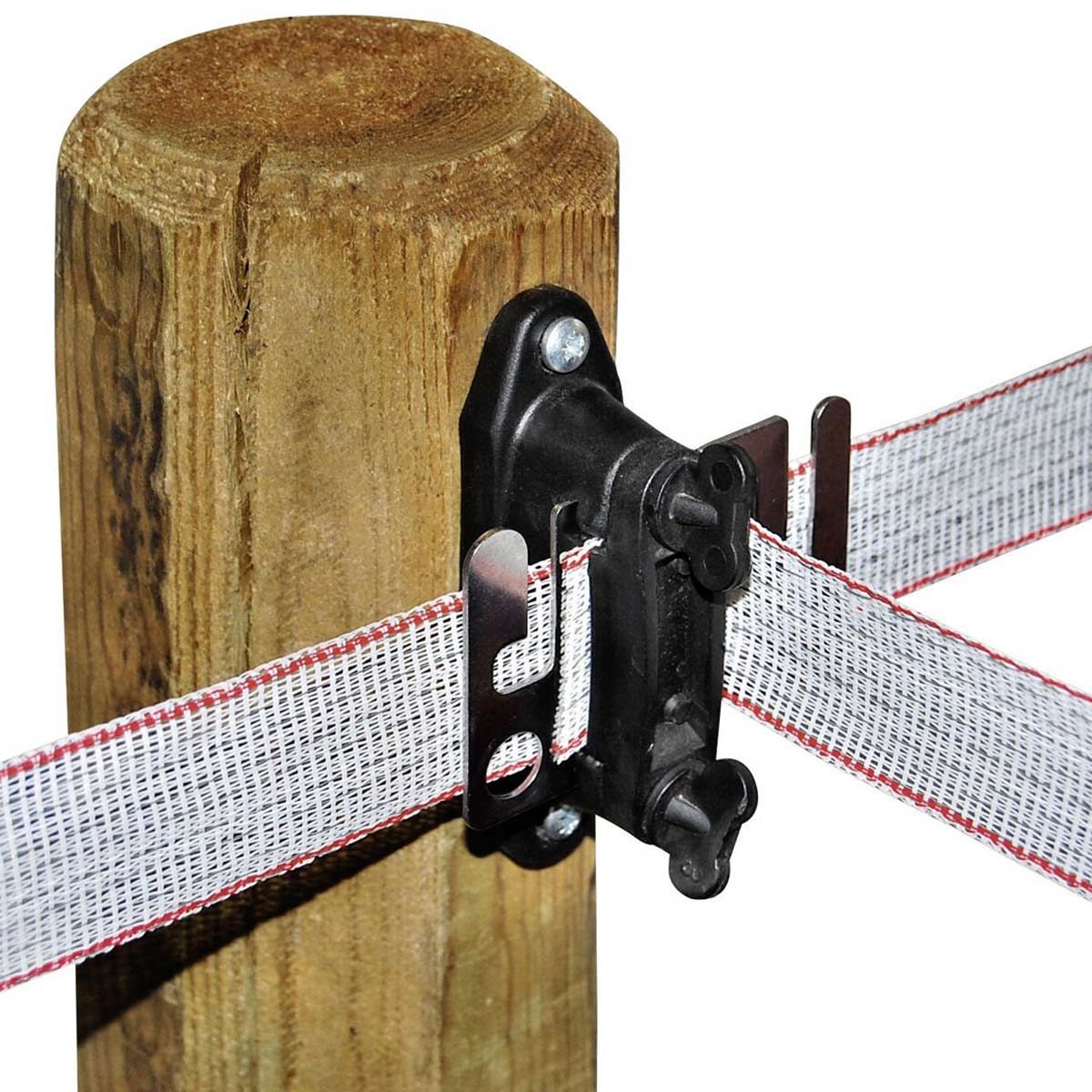 Isolateur à bande robuste avec panneau de connexion en acier inoxydable pour la poignée du portail et la connexion à la clôture électrique.L'ensemble d'isolateurs de bande de porte se compose de
