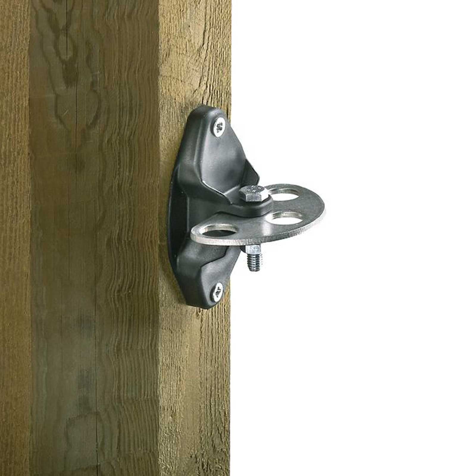 L'isolateur de poignée de porte robuste de est AKOpolyvalent et très facile à installer. Les plaques métalliques sont en acier inoxydable et le plastique est très résistant, ce qui rend les isolateurs très durables. La plaque de connexion offre 3 possibilités de connexion, par exemple Poignées de portail, fils de clôture et matériel conducteur. Montage rapide et facile.
