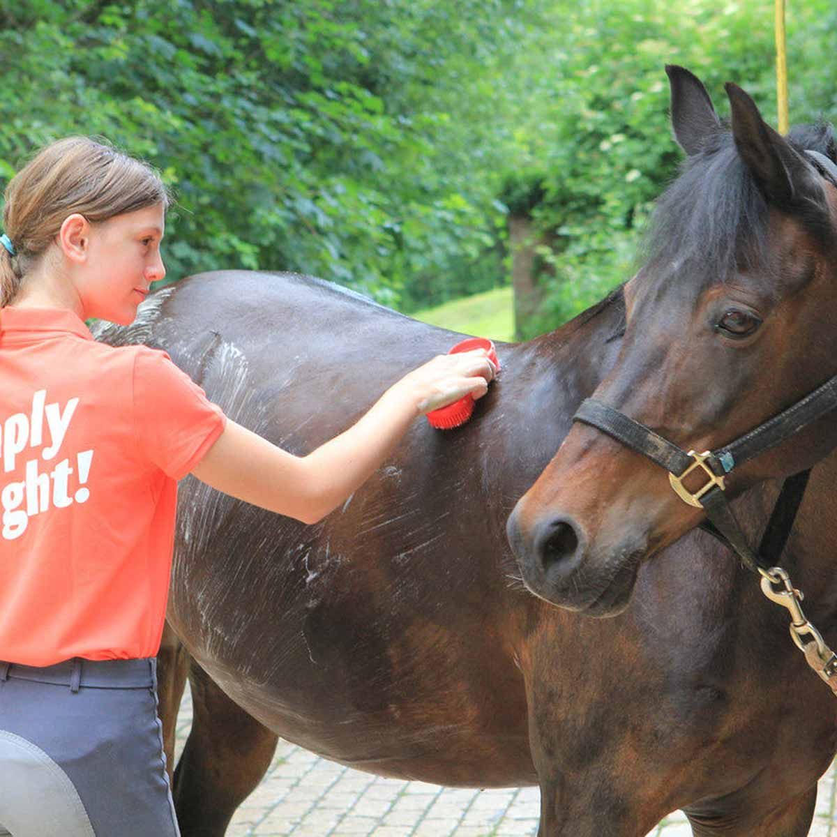 Votre MagicBrush massages votre cheval pendant le nettoyage. Votre cheval se sent si bien vraiment bien avec moi. Les nouvelles couleurs avec l'empreinte colorée des nouveaux pinceaux pour chevaux True MagicBrushLove apportent couleur, bonne humeur et bien-être à chaque écurie.