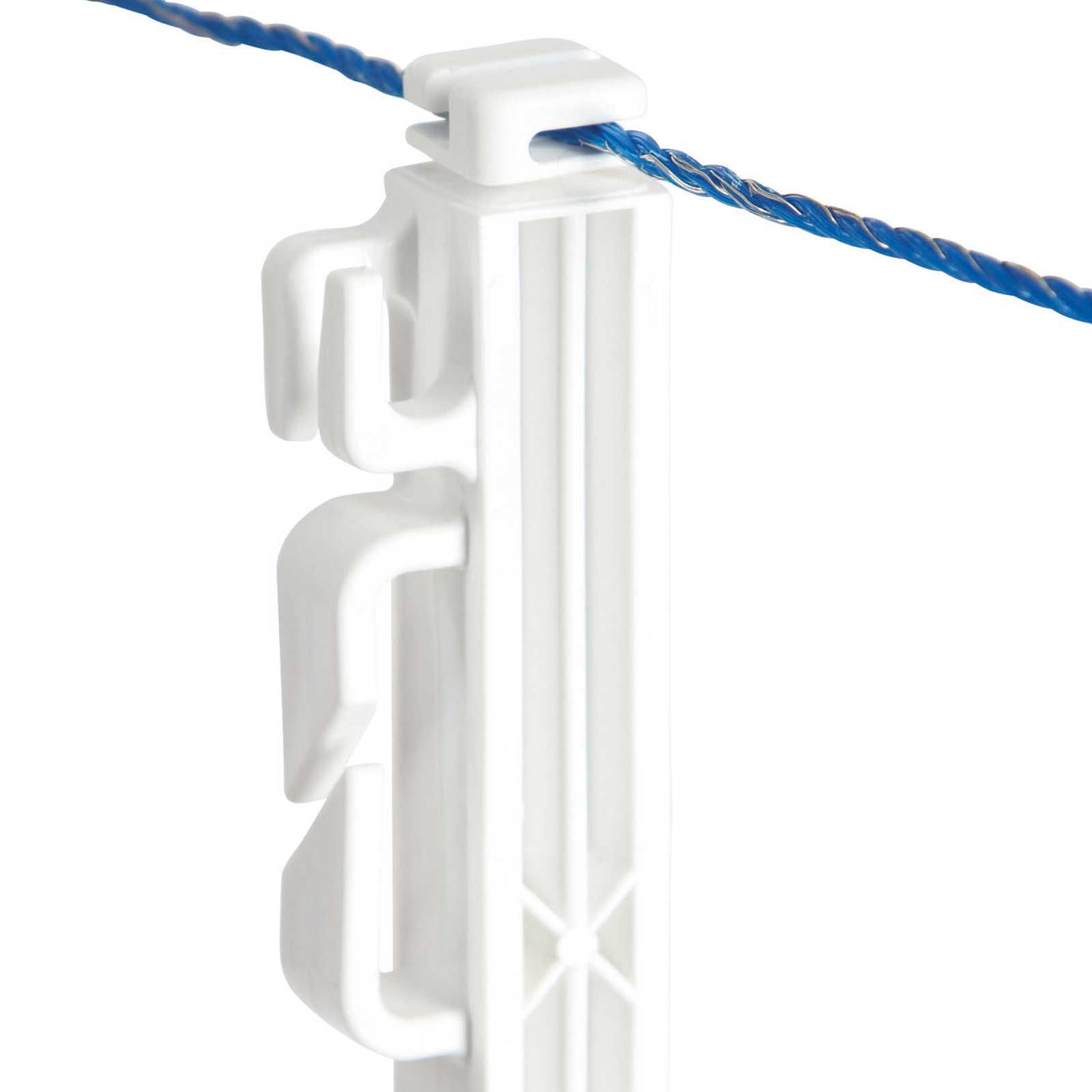 Les piquets en plastique sont adaptés à tous les rubans, torons et cordes courants et disposent au total d'un œillet pour le toron, de deux œillets pour la corde, de quatre œillets pour les rubans de 2 cm de large et de deux œillets pour les rubans de 4 cm de large (y compris l'isolateur de tête). Les piquets à étriers sont ainsi flexibles et peuvent être adaptés individuellement aux exigences respectives.