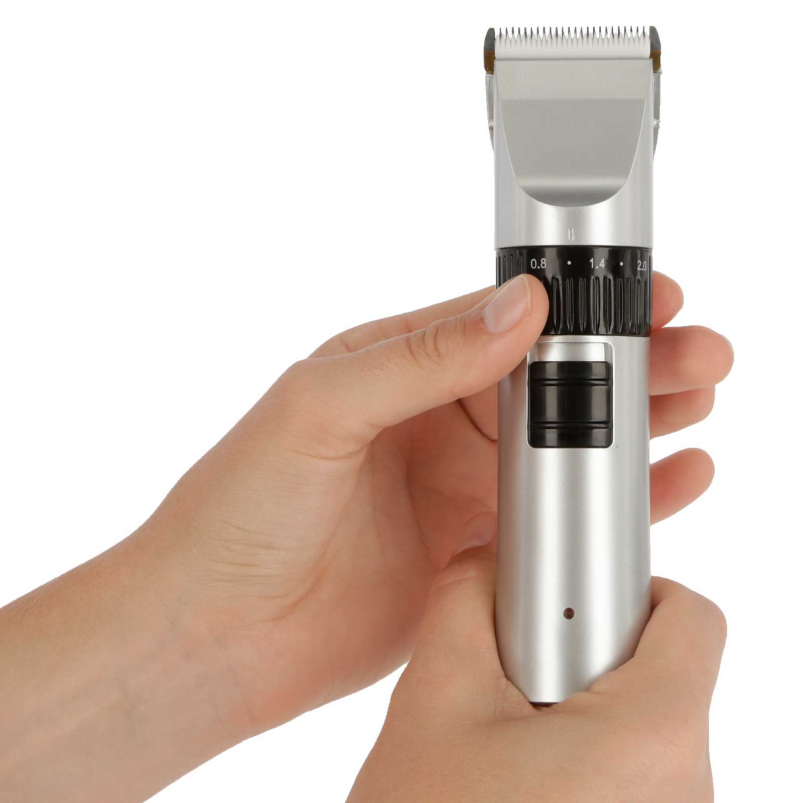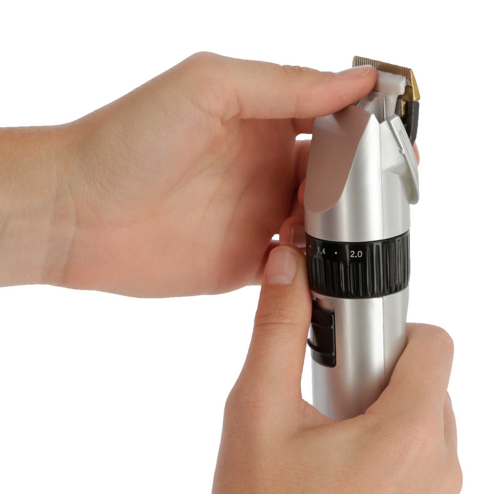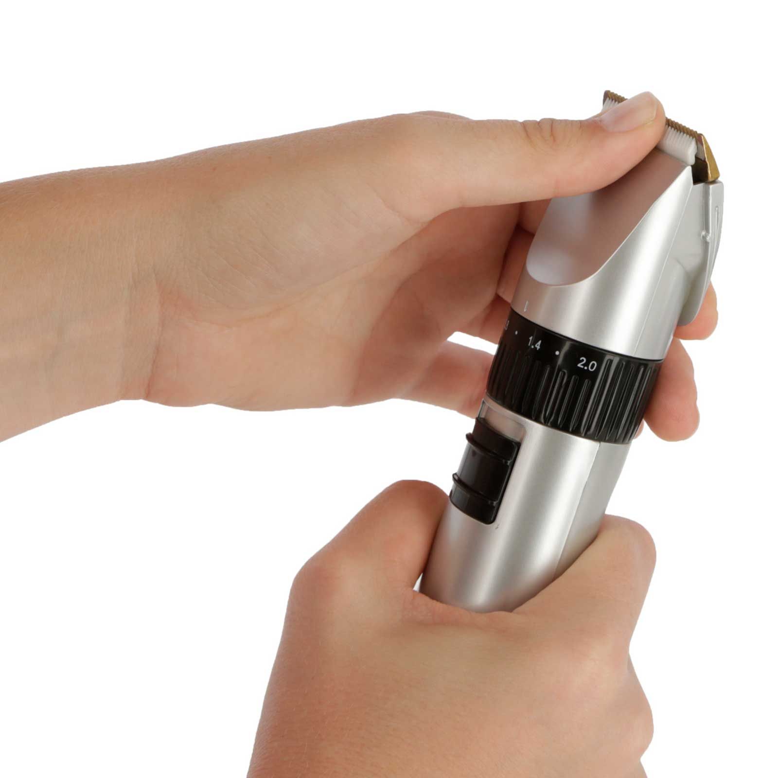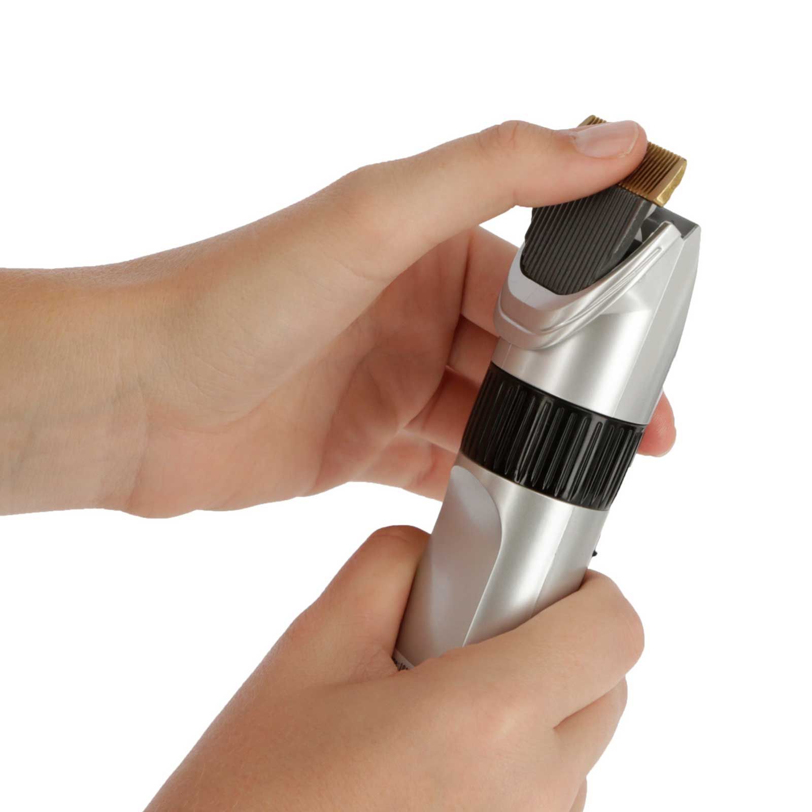 La batterie de la tondeuse à batterie est particulièrement puissante et assure un travail confortable même sur de longues périodes. Grâce au réglage de la hauteur de coupe en 5 étapes entre 0,8 et 2,0 mm, vous pouvez adapter la longueur de coupe individuellement à votre animal. Les quatre peignes de fixation fournis vous offrent un réglage encore plus individuel entre 3 et 12 mm de hauteur de coupe. L'Onyx est parfaitement adaptée à la tonte de détails et est alimenté par des batteries de 3 volts. La puissance du moteur est particulièrement forte avec 6900 tr/min.