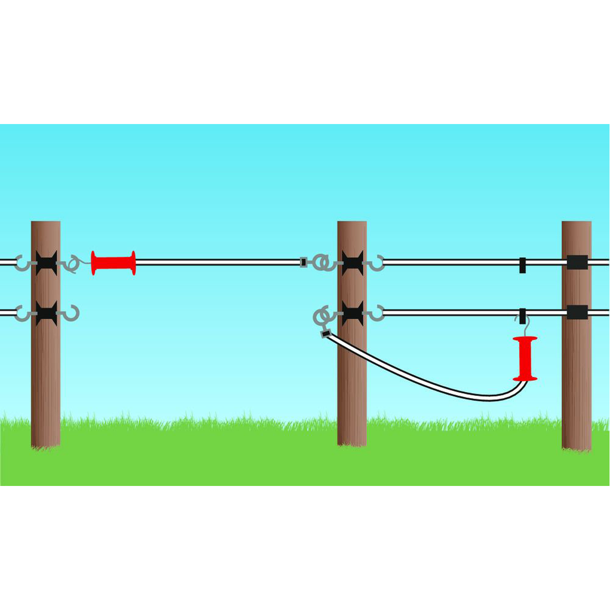 - convient pour les bandes de clôture de pâturage jusqu'à 40 mm de large, les cordes jusqu'à 8 mm de diamètre et les torons