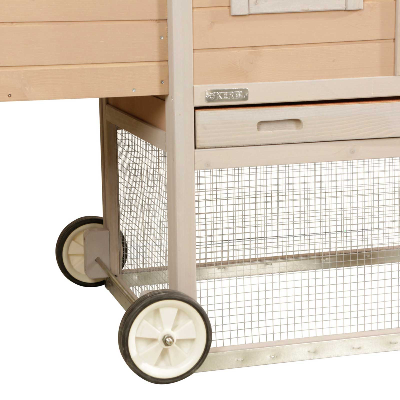 Avec le jeu de roues pratique que vous avez choisi, Kerblfaites de votre poulailler Bonny un poulailler mobile en quelques secondes. Les avantages d'un poulailler mobile par rapport à un modèle standard sont que l'herbe est protégée, que les poules ont toujours du vert frais à leur disposition, que les animaux sont moins dans la boue et que le risque d'infestation parasitaire est réduitEn un coup d'oeil:
