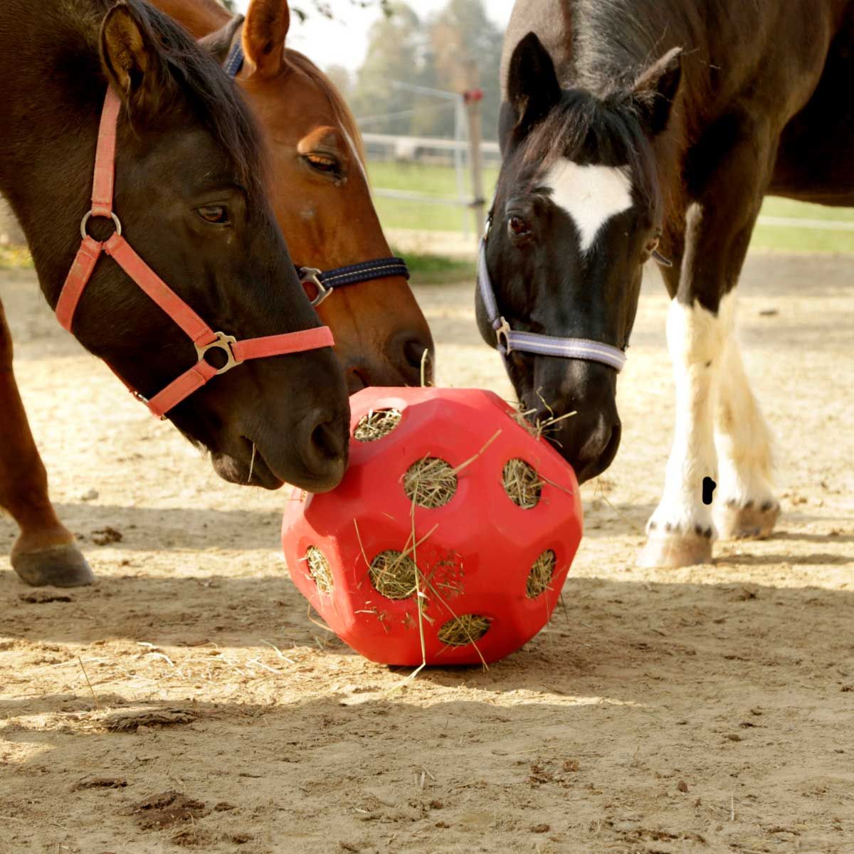 Boule d'alimentation HeuBoy pour chevaux et veaux rouge