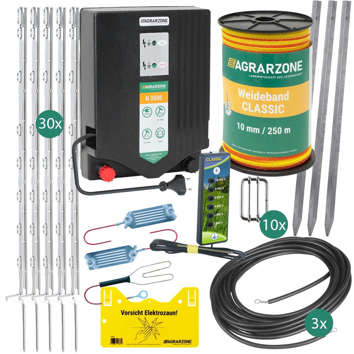 Kit complet de clôture Agrarzone contre le gibier avec électrificateur N 3500