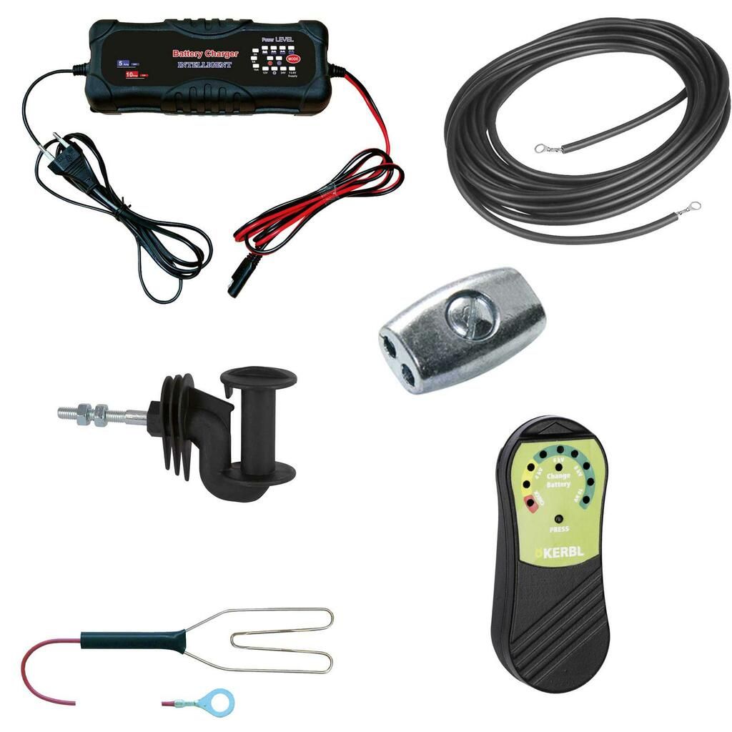 (incl.: 1x câble de connexion à la clôture, 1x câble de mise à la terre, 1x câble de connexion 12V, 1x adaptateur secteur 230V, 1x mode d'emploi) - 10x filet pour mouton, 50 m, 90 cm, double pointe, vert, électrifiable